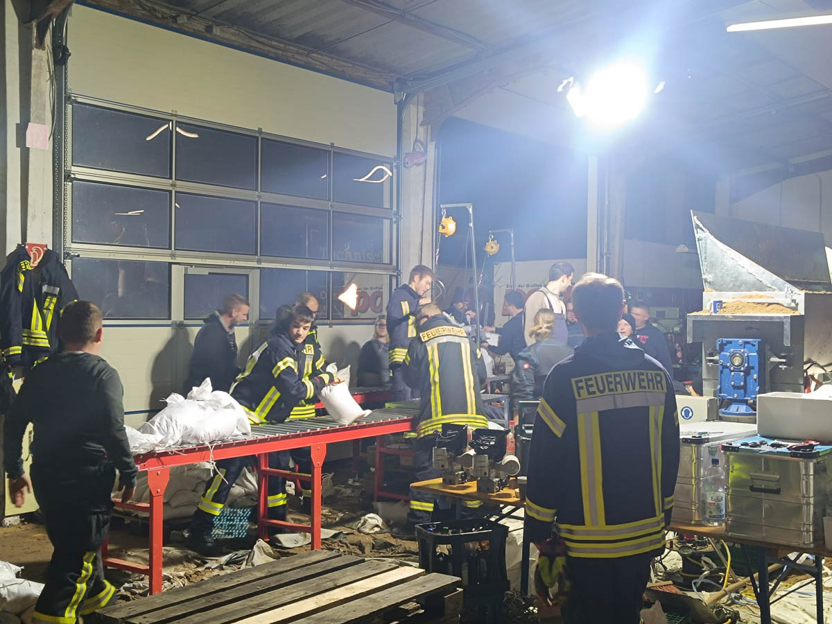 Nach ersten Schätzungen der Kreisfeuerwehr wurden in dieser Zeit kreisweit ca. 100.000 Sandsäcke gefüllt.