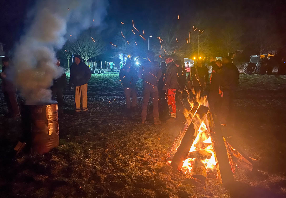 Die Anwesenden scharten sich um zwei Lagerfeuer und diskutierten über die Auswirkungen der derzeitigen bundesweiten machtvollen Bauenproteste. Einig war man sich, dass insbesondere in Schaumburg die Proteste überaus geordnet verlaufen sind, ebenso wie in den meisten Städten, Landkreisen und Bundesländern. Gefreut haben sich die Anwesenden darüber, dass sich auch beispielsweise Fuhrunternehmer und Binnenschiffer sichtbar an den Protesten beteiligt haben und es auch weiter tun werden. Eine Vereinnahmung der Proteste durch Chaoten und undemokratische Organisationen wie zum Beispiel die sich selbst so nennenden „Montagsspazierer“ lehnten die hier Anwesenden unisono ab: „Wir bleiben auf den Boden der Demokratie. Das ist unser wichtigstes Gut!“