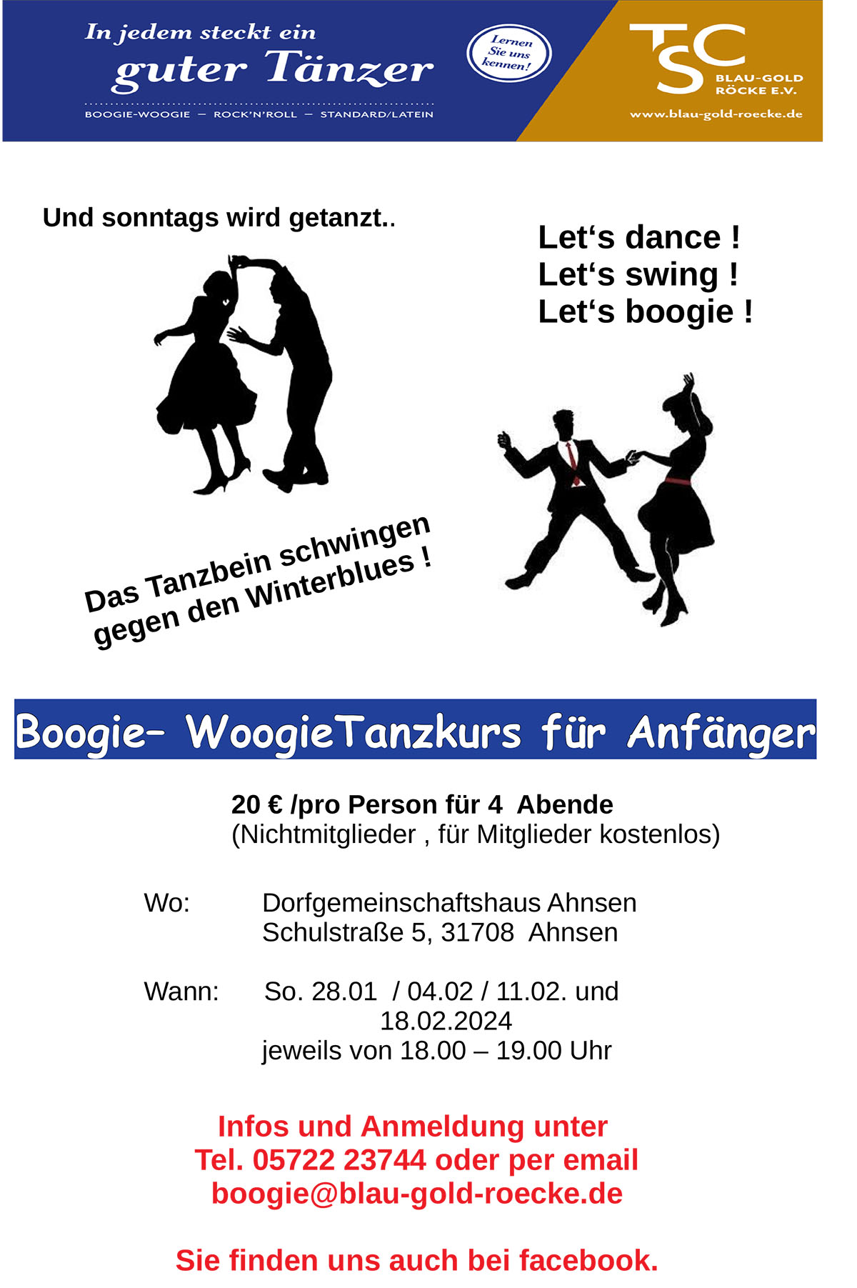 (Röcke) Das neue Jahr begrüsst der TSC Blau-Gold Röcke wieder mit einen Schnuppertanzkurs für Boogie Woogie.