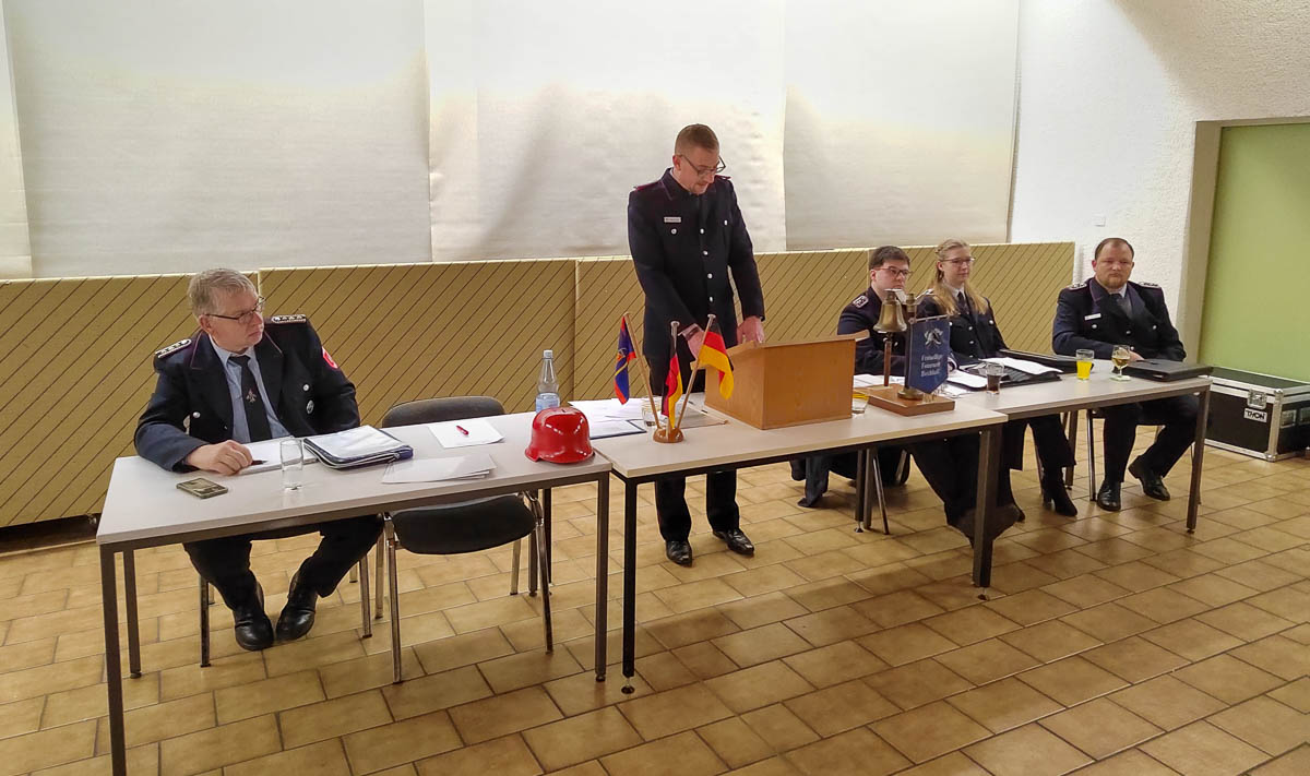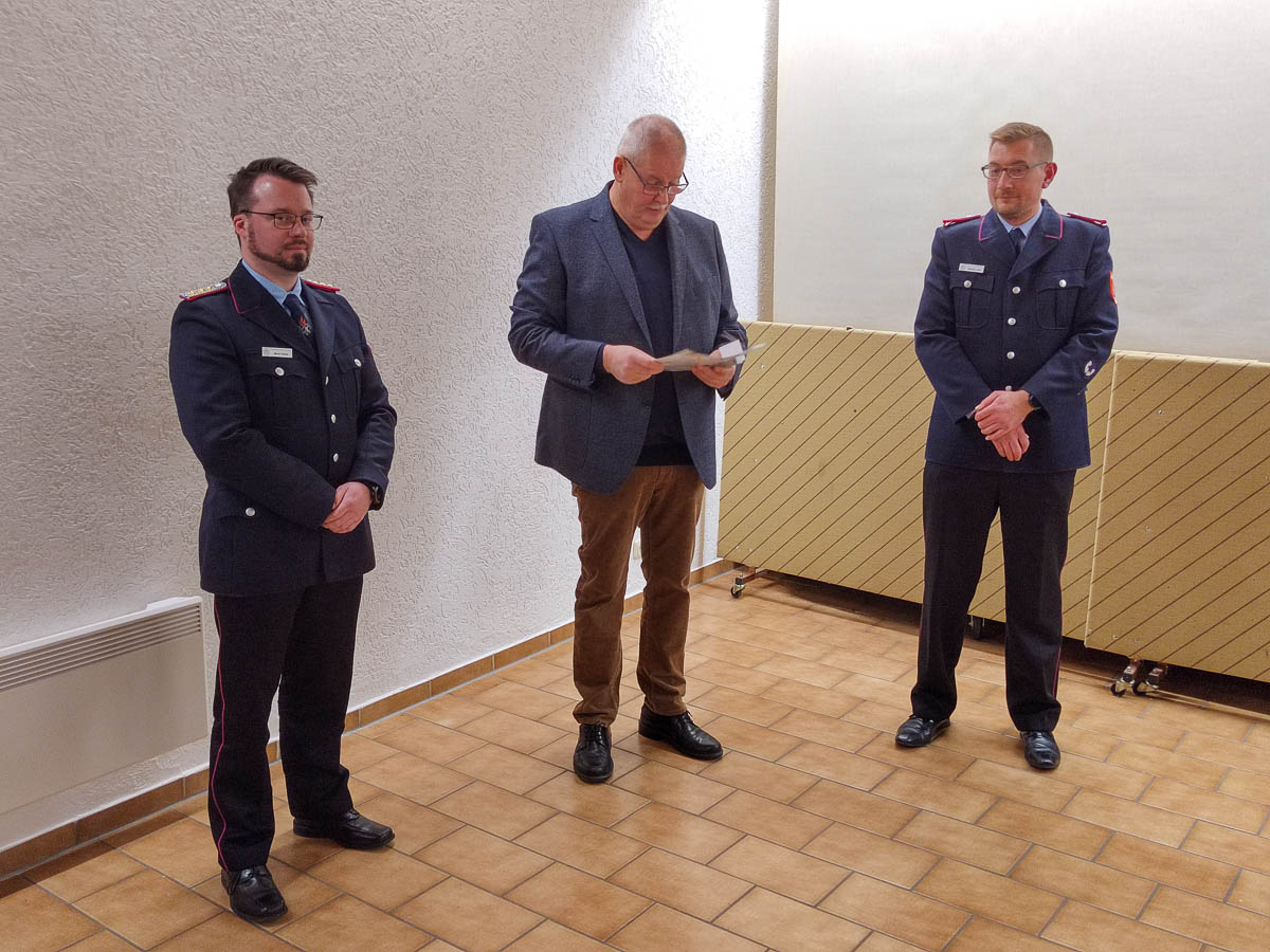Der stellvertretende Ortsbrandmeister Pascal Dehnst, ergänzte anschließend Lossies Bericht. Er führte aus, dass die Ehrenamtlichen im Jahr 2023 insgesamt 2627 Dienst- und Einsatzstunden, etwa für die Vorbereitung von Ausbildungsdiensten, die Erneuerung des Feuerwehrhauses und natürlich für Wartung und Pflege von Ausrüstung und Gerät leisteten.
