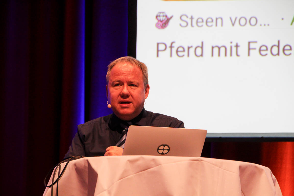 Dabei stellte er die rhetorische Frage vorab: „Warum ein Pferd keine Federn hat“. Mit diesem einfachen Konstukt erklärte Schrödel, der seit mehr als einem Jahrzehnt unter anderem für den Stern als Experte im Technik-Bereich fungiert, wie die KI funktioniert: Mit dem simplen Auftrag „Zeige mir ein Bild von einem Pferd mit Federn“ verdeutlicht Schrödel, das die KI anhand von Daten und Bildern trainiert wird – sie hat das gesamte Internet bis einschließlich 2022 durchforstet und auch Muster und Wahrscheinlichkeiten überprüft. Da es jedoch weder Bilder von Pferden mit Federn gibt, noch kaum anderweitige Quellen, in denen etwa das Wort Pferd im Kontext zu Federn auftaucht, kann die KI auch kein derartiges Bild erschaffen. Aber: Sie kann lernen. „Wenn man sie korrigiert, macht sie jeden Fehler nur einmal. Daher heißt es: Sei genau, gebe Kontext – umso genauer wird das Ergebnis“, erläutert Schrödel. „Es ist wie bei dem Sams: Du musst genau wünschen“.