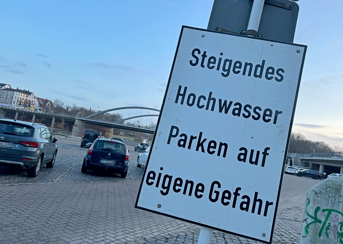 (Minden) Aufgrund des anhaltenden Regens und dem damit gestiegenen Weserpegel ist der Parkplatz Schladge gesperrt.