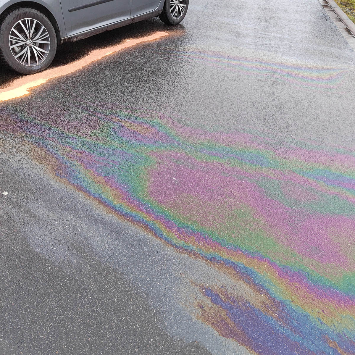 Aufgrund eines Defekts an einem PKW, kurz vor der Raststättenauffahrt, kam es zu einem erheblichen Austritt von Betriebsmitteln, welche sich auf der Fahrbahnfläche verteilten.