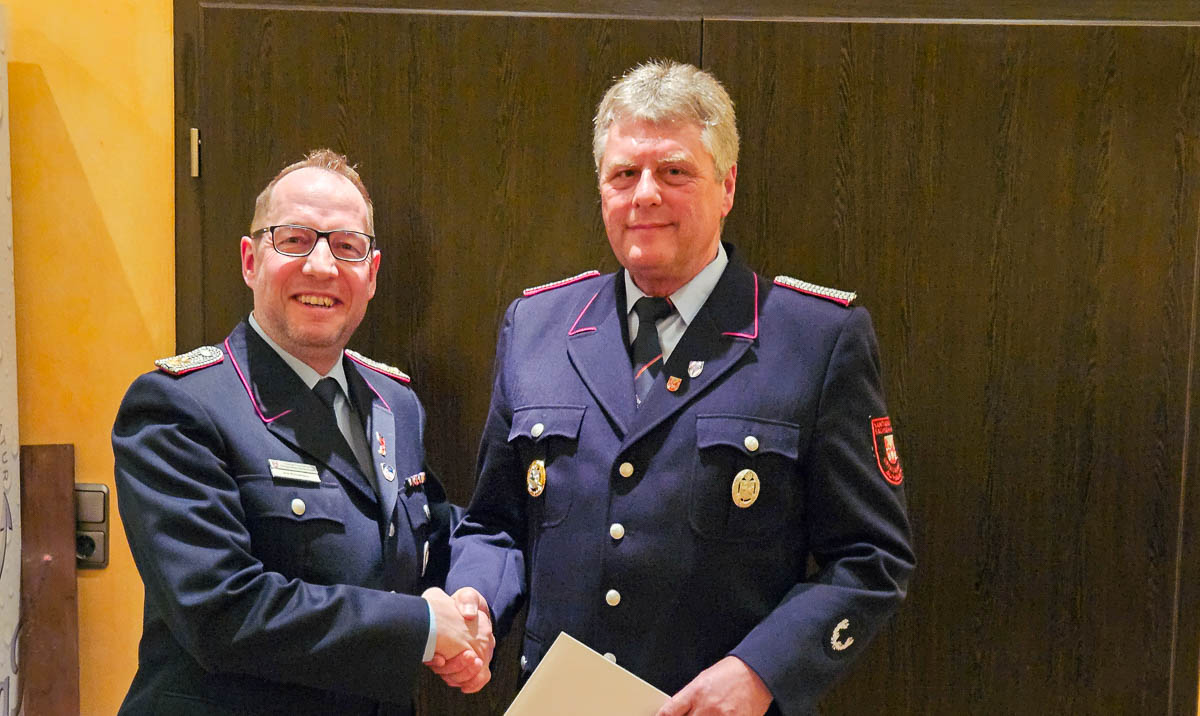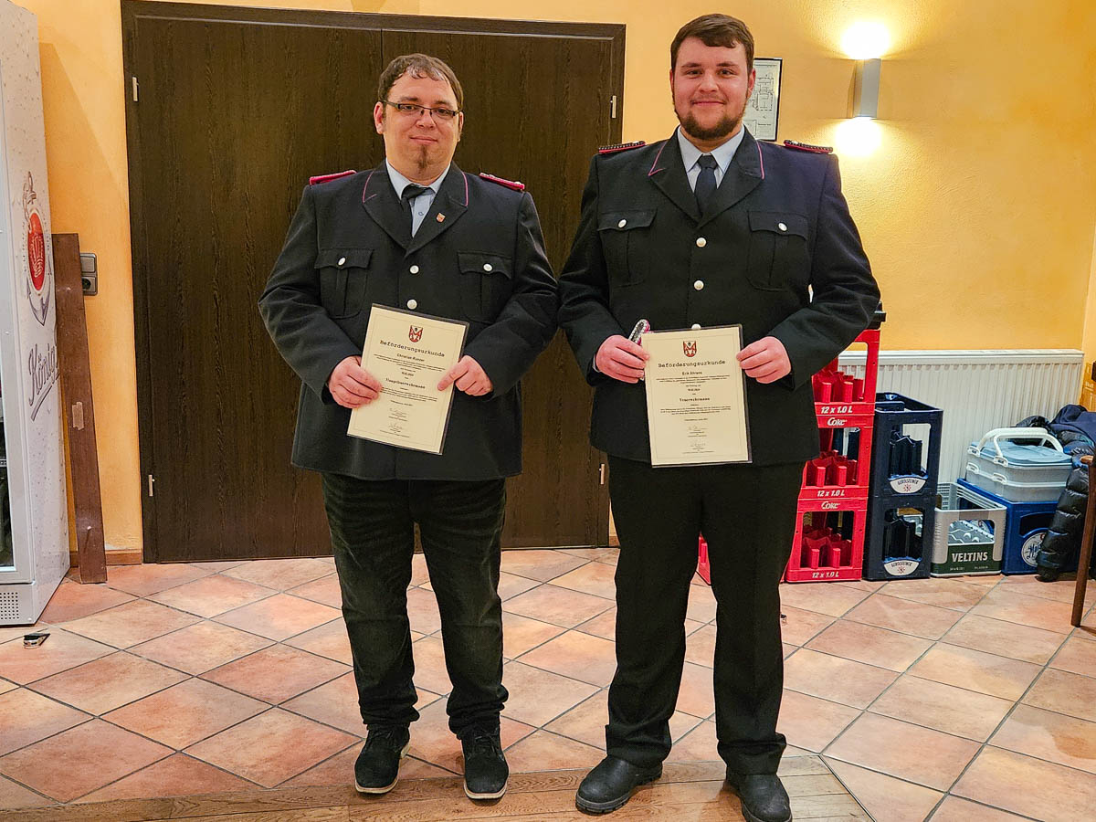 Zum Feuerwehrmann wurde Erik Ahrens befördert. Den Dienstgrad Hauptfeuerwehrmann trägt jetzt Christian Runzer.