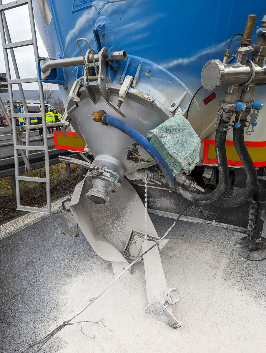 An dem beschädigten Lkw kam es zu einem Austritt des stark ätzenden Stoffes Calciumoxid.