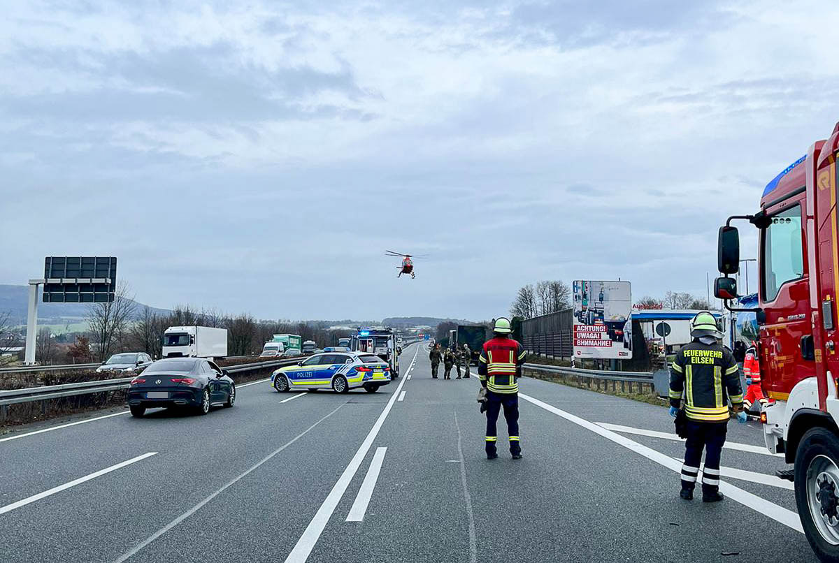 Transporterfahrer bei Unfall mit Gefahrgut-LKW auf der A2 im Auetal schwer verletzt