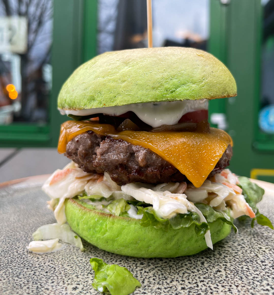 Im Minchen steht alles unter dem Motto „Nicht schwarz sehen – Alles wird GRÜN“. Neben dem grünen St. Patrick´s Beer gibt es übrigens auch grüne Burger.