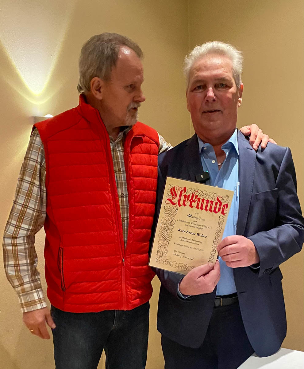 Zunächst überreichte er Karl-Ernst Weber für seine 40jährige Mitgliedschaft eine Urkunde und verwies auf die große Arbeitsleistung des Jubilars für die Belange des Vereins.