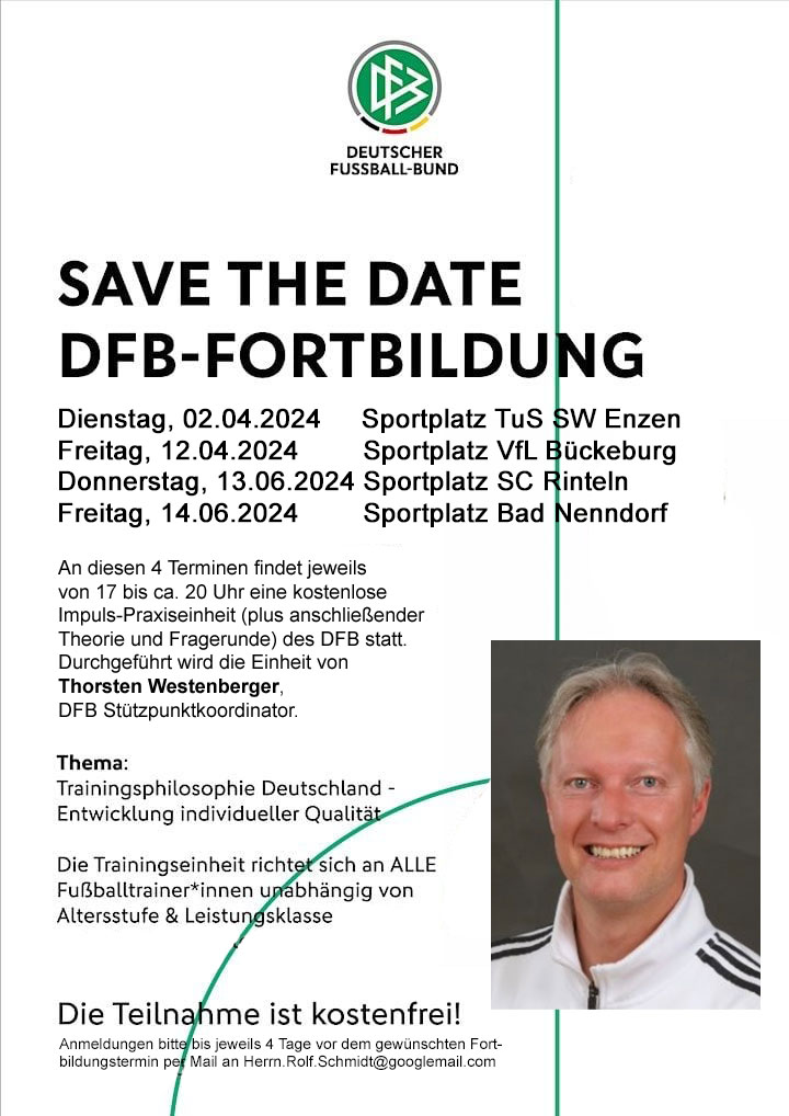 Mit der „Trainingsphilosophie Deutschland“ möchte der DFB das Fußballtraining in allen Altersklassen optimieren. Daher freut sich der Kreisvorstand des NFV Schaumburg eigenen Angaben zufolge sehr, dass sich der DFB-Stützpunktkoordinator Thorsten Westenberger Zeit nimmt, um durch die Trainingsideen und Konzepte zu führen.