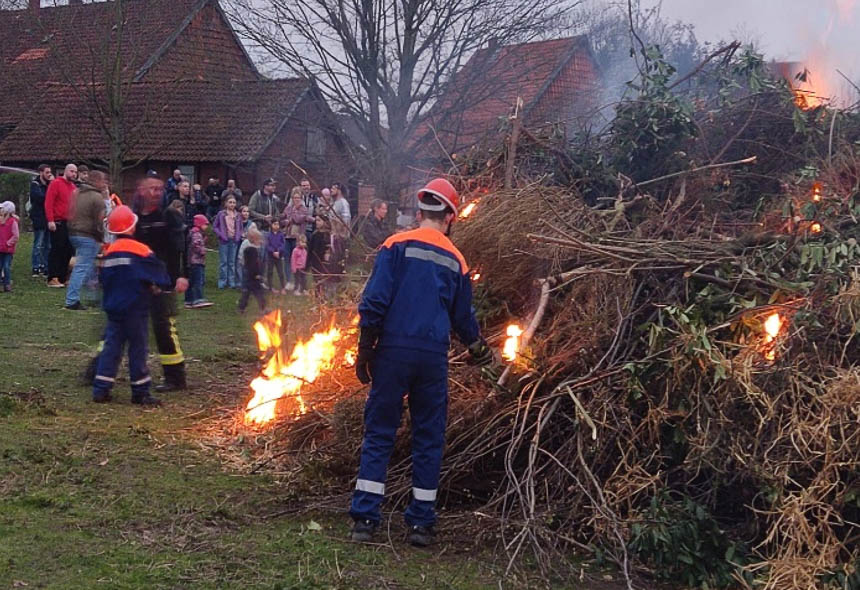(Sülbeck) Die Ortsfeuerwehr Sülbeck hat am 30. März ihr traditionelles Osterfeuer auf der Wiese der Familie Kirchner ausgerichtet.