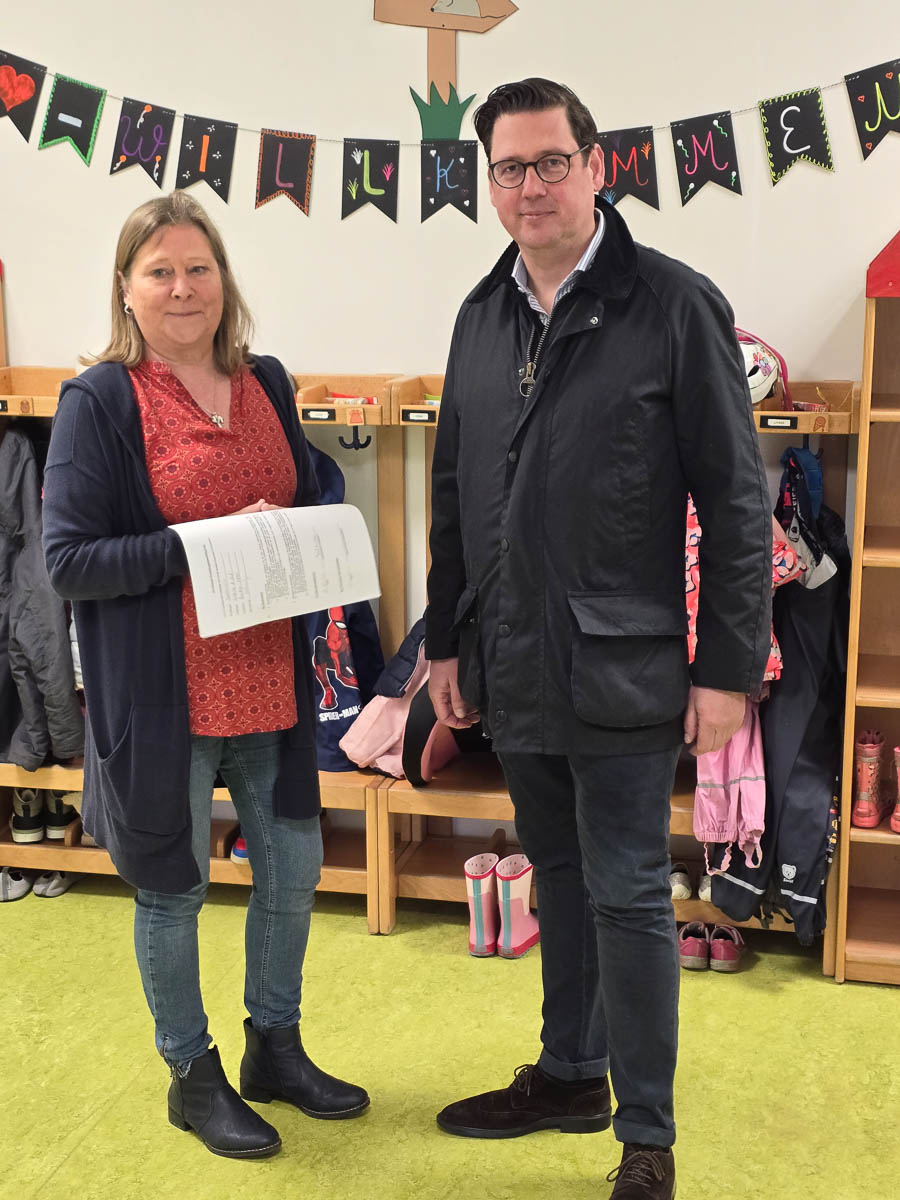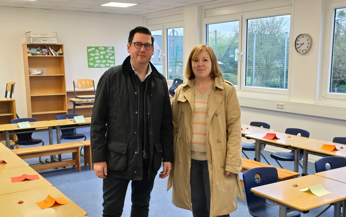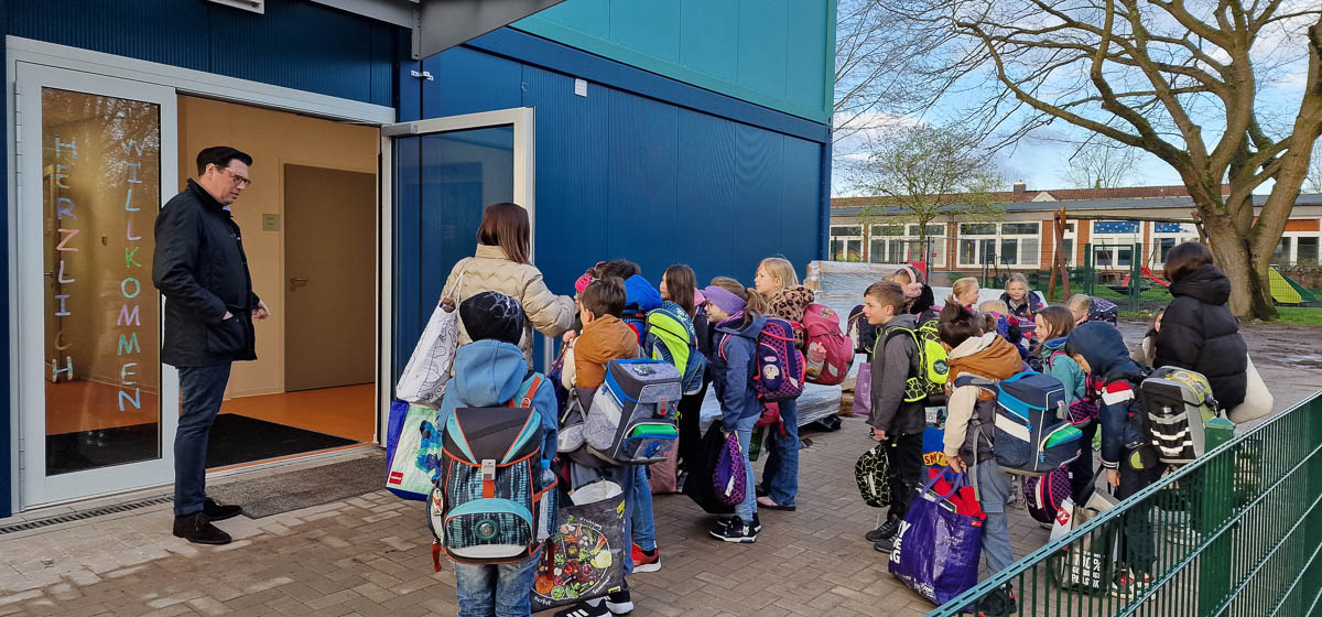 Zuvor erfolgte innerhalb der Osterferien der Umzug mit tatkräftiger Unterstützung in die Container, unter anderem durch die kommissarische Schulleiterin Gesa Schröder und ihrem Kollegium sowie der Kindergartenleiterin Rita Bredemeier und ihrem Team.