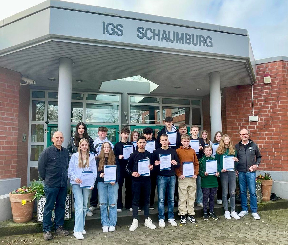 Im Anschluss wurden die Schüler in einem mehrstündigen Training vom erfahrenen Trainer und Coach Reinhard Stemme (Volksbank in Schaumburg und Nienburg) darin geschult, sich erfolgreich zu bewerben. Der Einstieg war eine Feedbackrunde zum letzten Praktikum, anschließend wurde das erfolgreiche Vorstellen anhand eigener Interessen und Stärken in einem freien Vortrag geübt, nach einem allgemeinen Einstellungstest konnten sich die Schüler jeweils in simulierten Vorstellungsgesprächen erproben. „Insgesamt war es ein sehr konstruktiver und außergewöhnlich wertschätzender Umgang miteinander“, so Trainer Stemme.
