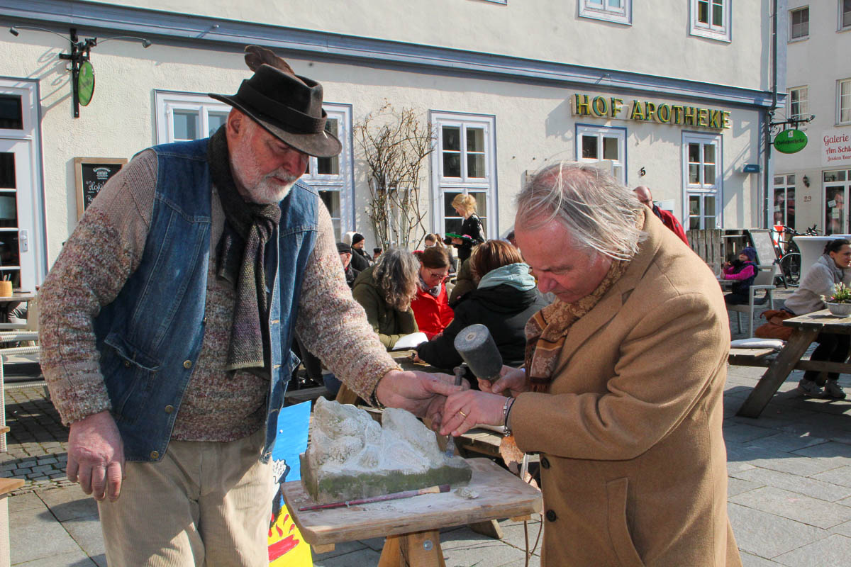 Dabei wird von allen Kunstrichtungen etwas geboten: Peter Spielmann zeigt dem interessierten Publikum, wie filigran mit Hammer und Meißel gearbeitet werden kann. Dank seiner Fingerfertigkeit entstehen so aus groben Steinblöcken Gesichter, Tiere und vieles mehr.