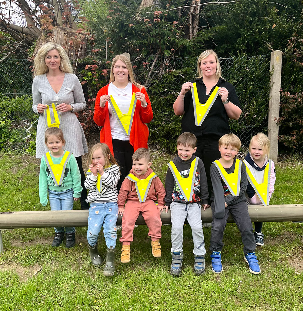 Dank einer großzügigen Spende der Volksbank in Schaumburg und Nienburg erhalten die Kinder nun Sicherheitswarnkragen, die ihnen bei Ausflügen und Spaziergängen im Straßenverkehr mehr Sicherheit bieten.