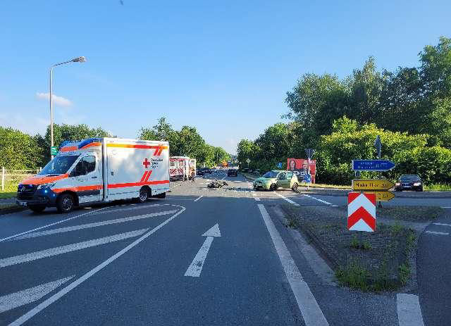 Ein 23-jähriger Motorradfahrer aus Bückeburg befuhr die Hauptstraße in Richtung Bückeburg. Ein 18-jähriger Citroen-Fahrer aus Sachsenhagen kam ihm entgegen und bog nach links auf die Auffahrt zur B65 ein, ohne auf den Motorradfahrer zu achten.