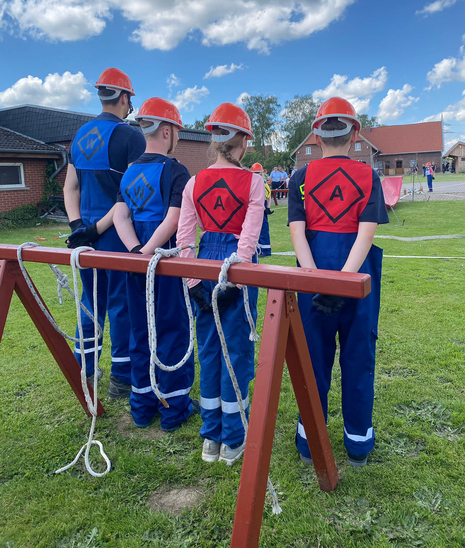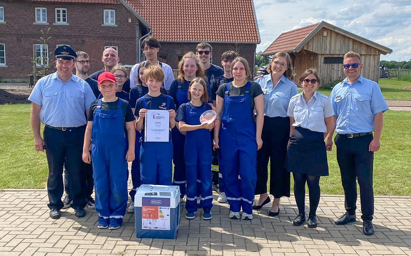 Das Wertungsgericht aus der Stadtjugendfeuerwehr Bückeburg stoppte die Zeit und bewertete die einzelnen Gruppen. Während des Wettbewerbes sorgte die Feuerwehr Tallensen-Echtorf mit Bratwurst und Kuchen für das leibliche Wohl.
