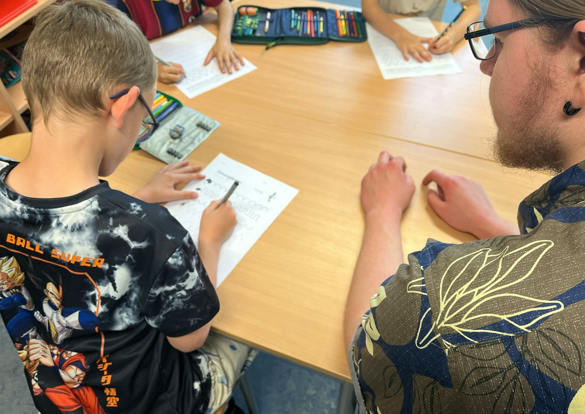 An fünf Terminen erhalten die Grundschüler in kleinen Gruppen ein jeweils einstündiges Training, in dem zunächst eine Befundung/Diagnostik stattfindet, um dann an der richtigen Sitzhaltung, einer korrekten Stifthaltung oder den Umgang mit der Schere zu arbeiten. Der Ablauf folgt dabei einem von Fachleitungen erarbeitetem Konzept. „Vielen Erstklässlerinnen und Erstklässlern fällt die flüssige Schreibbewegung sehr schwer. Zusätzlich auf die Rechtschreibung oder den Inhalt zu achten, ist für manche Kinder dann zu viel. Auch für Fantasie ist kein Raum mehr. Deshalb ist es wichtig, dass sie kindgerecht erlernen, Stift oder Schere richtig und unverkrampft zu benutzen. Außerdem geben einige Kinder ihr Wissen gerne in der Familie weiter und sind natürlich ganz stolz darüber“, erläutert Schulleiterin Antje Kronenberg den Vorteil der Kooperation. Man freue sich sehr über dieses Angebot, dass nach einem ersten Testdurchlauf nun jährlich wiederholt werden soll.