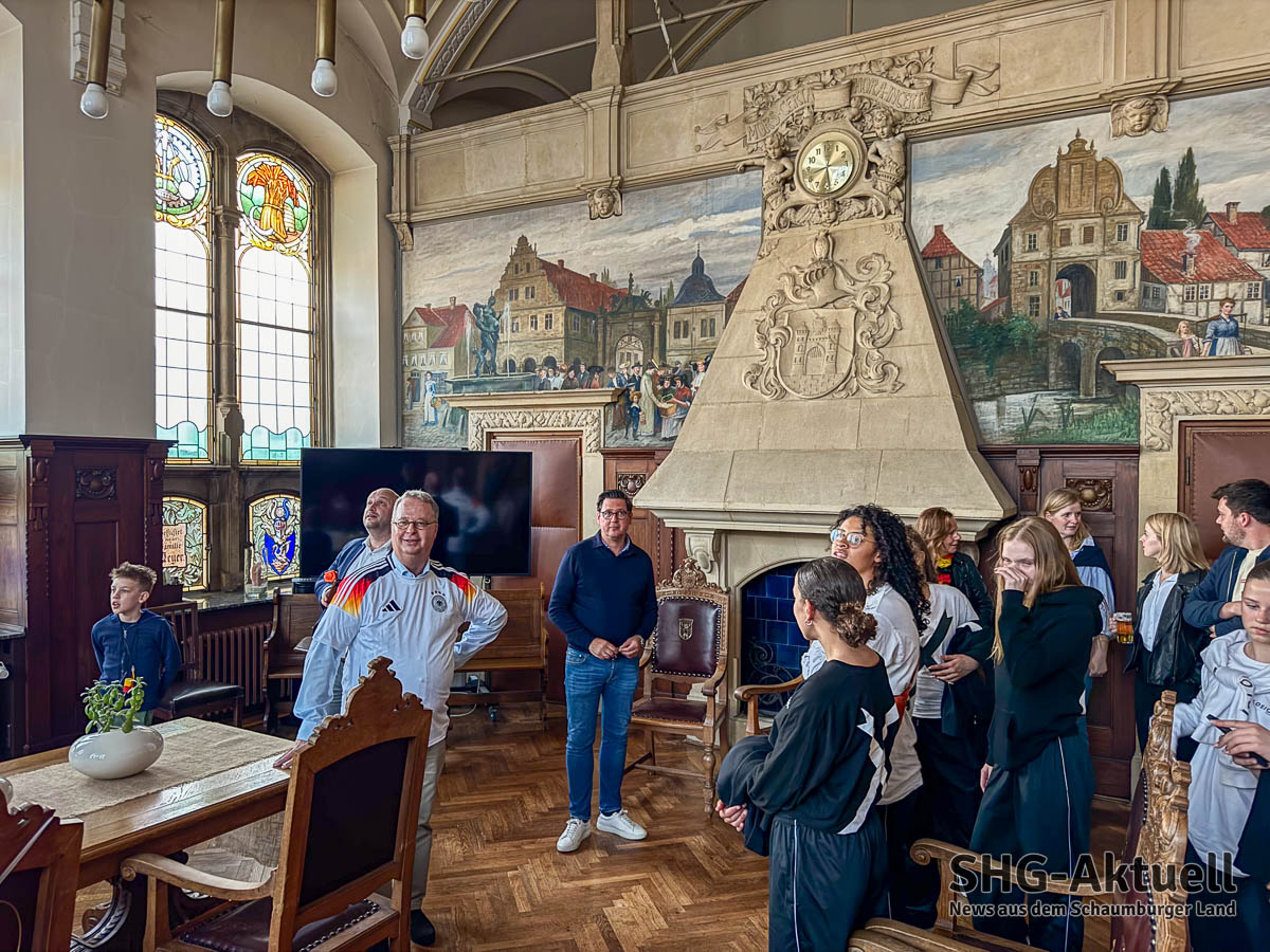 Bei der Besichtigung des Rathauses.