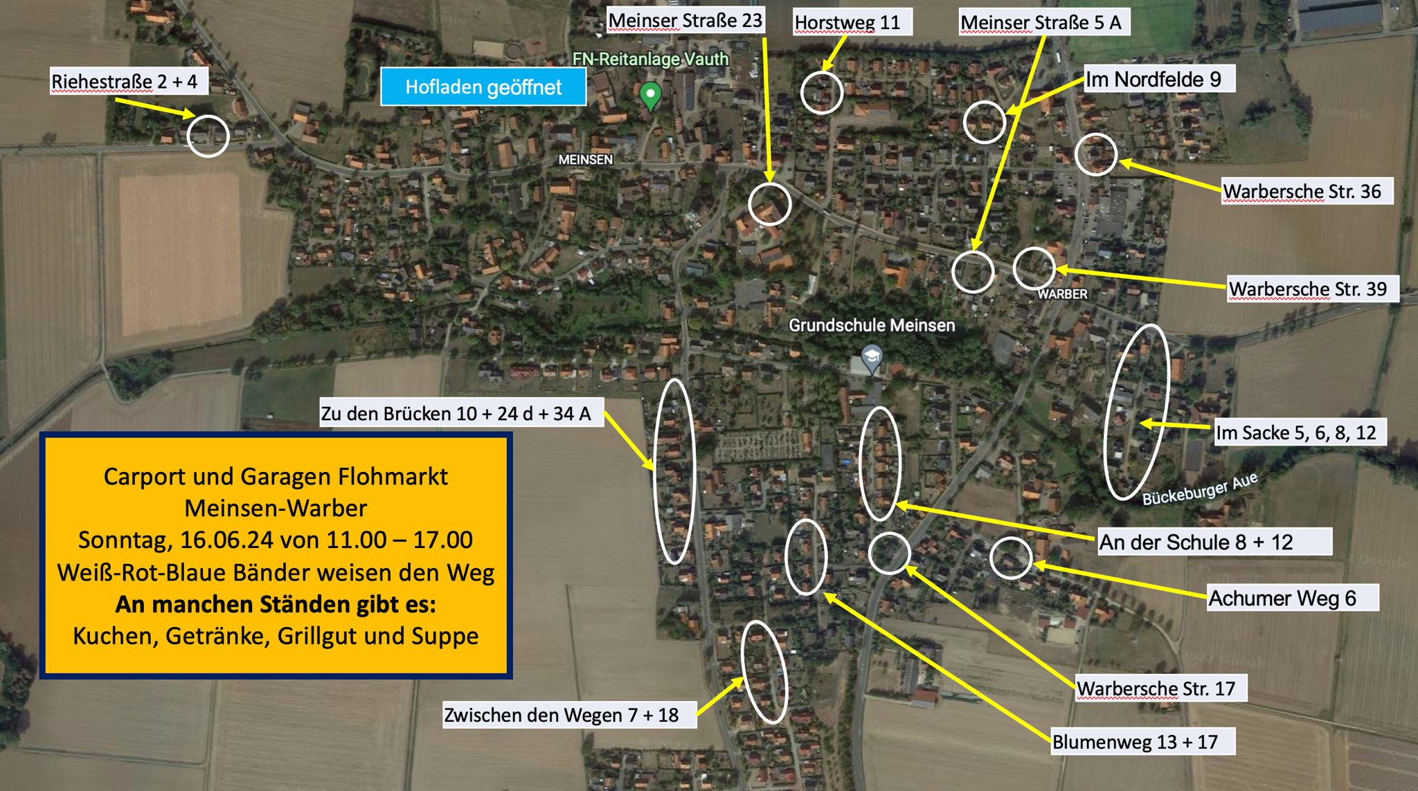 (Meinsen-Warber) Der dritte Carport- und Garagenflohmarkt in Meinsen-Warber findet am morgigen Sonntag in der Zeit von 11.00 bis 17:00 Uhr statt.