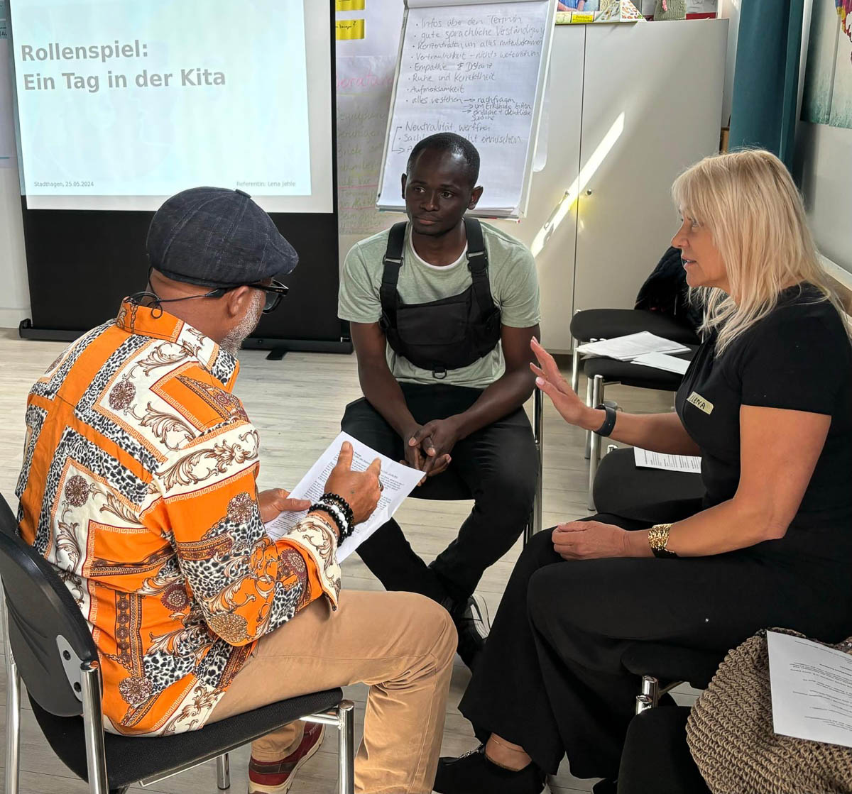Ziel der eineinhalbtägigen Schulung am letzten Mai-Wochenende in Stadthagen war es, die Sprachmittler gut auf dieses Ehrenamt vorzubereiten. Die Referentin Lena Jehle, M.A. Internationale Migration und Interkulturelle Beziehungen sowie Sprachmittlungs-Trainerin, vermittelte den Teilnehmern durch Vorträge und Übungen die beste Vorgehensweise beim Dolmetschen. Sie thematisierte den Ablauf einer Sprachmittlung und erläuterte das Rollenverständnis von Sprachmittlern. Anhand von Beispielen beschrieb Jehle die Aufgaben und Grenzen der Sprachmittlung und leitete verschiedene Übungen und Rollenspiele an, bei denen die Teilnehmenden mal in die Rolle von Auftraggebern, mal in die von Klienten und mal in die von Sprachmittleren schlüpften. Das Feedback der Teilnehmenrn am Ende der Schulung fiel äußerst positiv aus. Selbst diejenigen, die bereits im Familien- oder Freundeskreis gedolmetscht hatten, brachten zum Ausdruck, dass sie die vermittelten Inhalte und Sichtweisen als sehr hilfreich und praxistauglich empfunden hätten.
