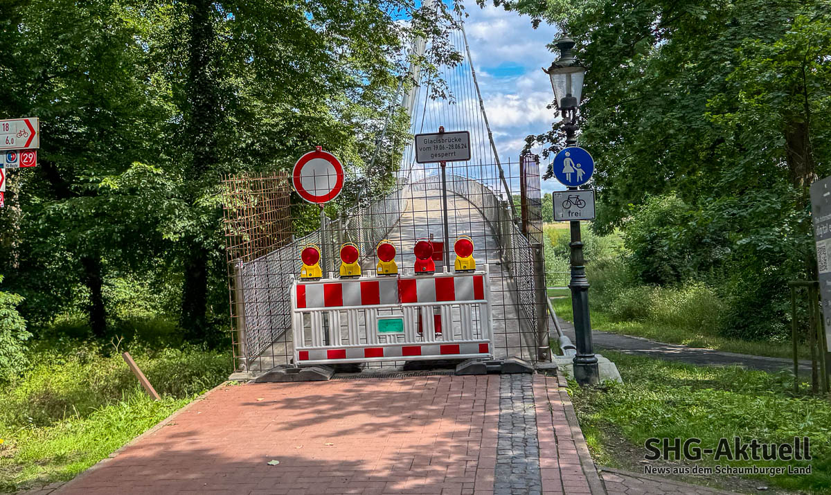Radfahrer und Fußgänger können die Brücke bis zum 28. Juni nicht benutzen und müssen die Weserbrücke als Umleitung nutzen. Eine Umleitung ist ausgeschildert. Grund für die Sperrung sind einer Mitteilung der Stadt Minden zufolge zum einen Stahlbauarbeiten und zum anderen Elektroarbeiten an der Glacisbrücke. Diese können nur unter der Vollsperrung durchgeführt werden.