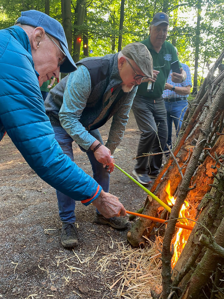 Die Ehre das Sonnenwendfeuer auf der Mitte des Platzes vor der Schutzhütte zu entzünden hatten der Ehrenlandrat des Landkreises Schaumburg, Heinz-Gerd Schöttelndreier, und der Leiter des Kreisforstamtes Schaumburg, Lothar Seidel. Seit 44 Jahren findet diese Feier vor der im November 1979 eingeweihten Schutzhütte statt, unterbrochen im vergangenem Jahr als Ausnahme durch eine Spätsommerfeier im August.