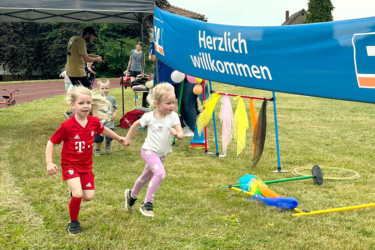 Anlass war ein Spendenlauf zu Gunsten eines schwer erkrankten Kindes und seiner Familie, bei dem Krippenkinder, Kindergartenkinder, Mitarbeitende der Kita, Eltern und Soldatinnen und Soldaten sowie zivile Bundeswehrangehörige zusammen an den Start gingen.