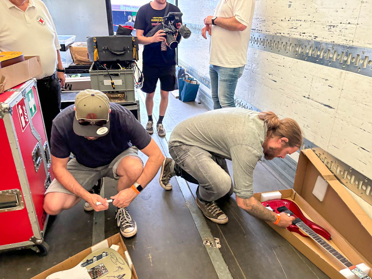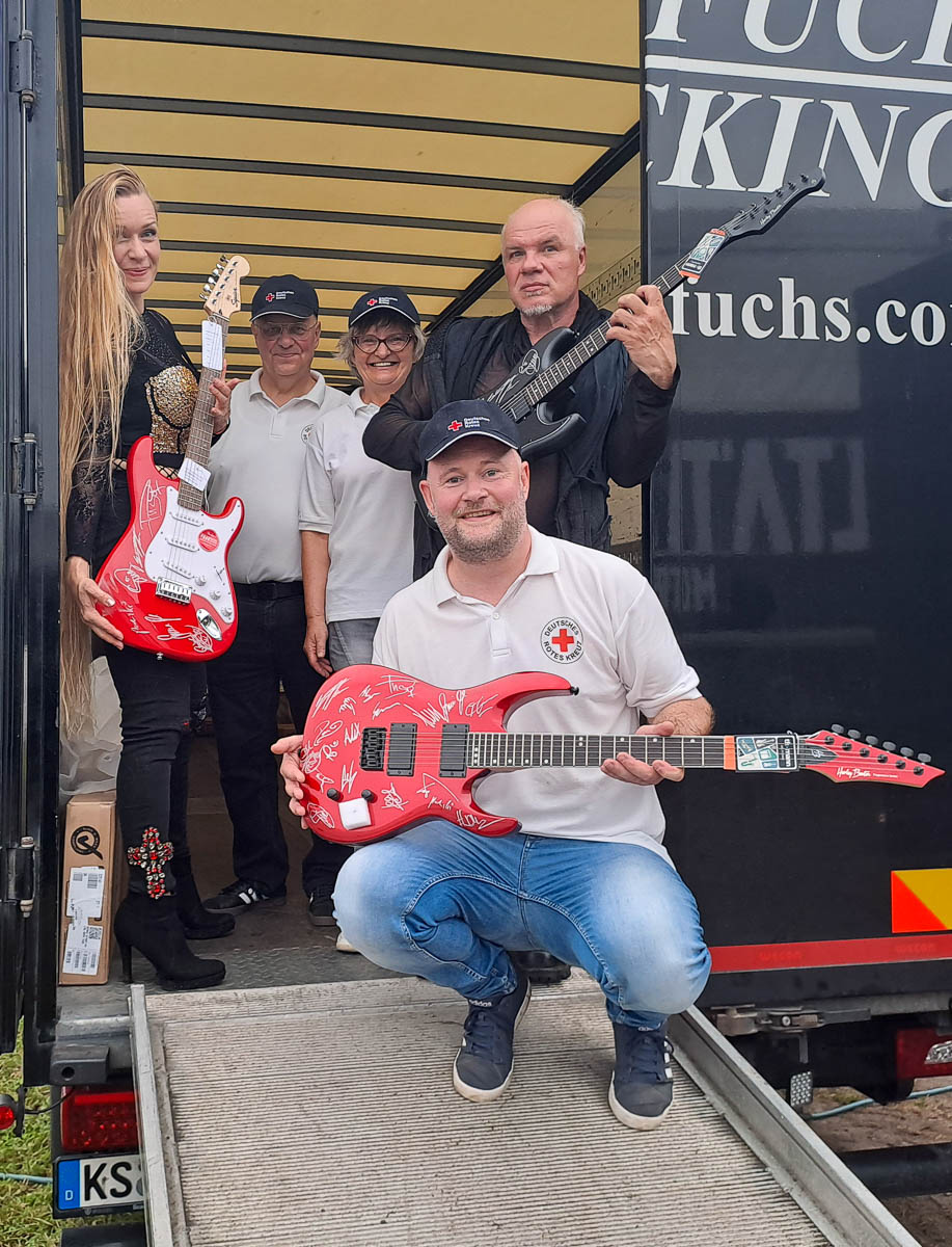 Im vergangenen Jahr wurden die signierten Gitarren erfolgreich über die Auktionsplattform United Charity versteigert. Die Erlöse kamen verschiedenen Aktionen und der ehrenamtlichen Arbeit des DRK Ortsvereins Bückeburg zugute. Als Dank überreichte Lampe den Bands eine Zusammenfassung der Pressemeldungen und weitere Informationen über die Verwendung der Erlöse. Zusätzlich erhielt jede Band als Anerkennung und Wertschätzung ein spezielles Geschenk.