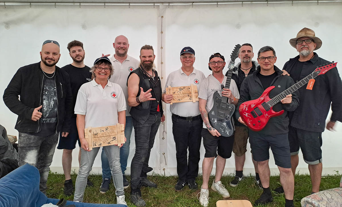Während des Treffens wurden diverse Gegenstände, darunter sieben Gitarren, von den Bandmitgliedern signiert. Der Vorstand des DRK, vertreten durch den Vorsitzenden Sven Lampe sowie Ellen und Roberto Heller, zeigte sich erfreut über das Wiedersehen mit den Musikern. „Es war eine tolle Atmosphäre und wir konnten viele interessante Gespräche führen,“ so Lampe.