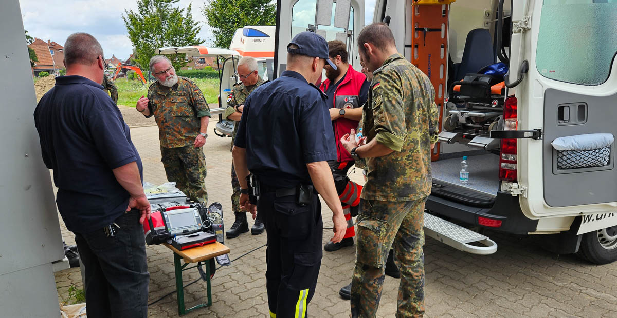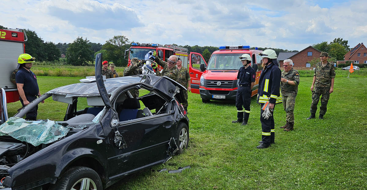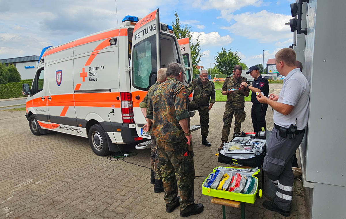 (Hagenburg) Zu einem gemeinsamen Übungstag trafen sich Reservisten der Bundeswehr, Mitglieder des DRK-Ortsvereins Sachsenhagen, sowie der Feuerwehr Hagenburg-Altenhagen am Feuerwehrhaus Hagenburg.
