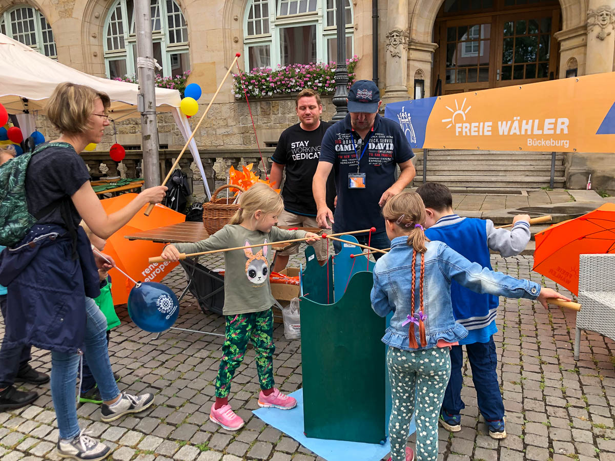 Vom Rathaus die Bahnhofsstraße hinunter wird sich die „Blaue Meile“ positionieren. Hier präsentieren sich die Bückeburger Hilfsorganisationen mit vielen Informationen und Mitmach-Aktionen für Kinder. Soweit das Auge reichen wird, wird es bunt und fröhlich werden. Dabei richtet sich die Veranstaltung ausdrücklich an alle Bückeburger – nicht nur Familien. „Auch Neubürger, Alleinstehende, Senioren, Paare, kurzum alle Bürger Bückeburgs sind an diesem Tag willkommen, gemeinsam ein paar schöne Stunden zu verbringen“, lädt Bürgermeister Axel Wohlgemuth ein.
