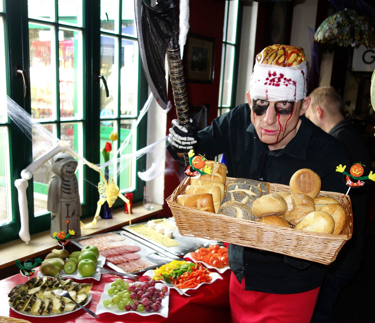 Am 27.10. erwartet die Besucher ein Gruselfrühstück von 10 – 13 Uhr. Neben klassischen Frühstücks-Leckereien gibt es schaurige Halloween-Specials wie den Totenkopf-Kuchen. Brötchen von der Bäckerei Achter und Wurstspezialitäten von Schlachter Mühe machen das Angebot komplett. Reservierungen sind über die Website möglich.