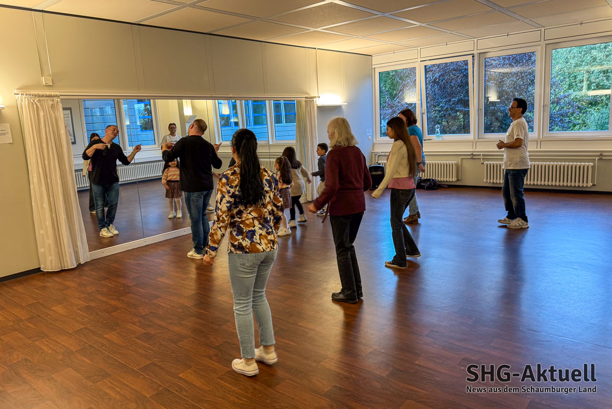 Profi-Tänzer und Tanzlehrer Mark Rudi aus Bückeburg bot mit seinem Kursangebot die Möglichkeit für Jung und Alt, gemeinsam Tanzschritte zu lernen und beim „Line-Dance“ komplette Choreografien einzustudieren.