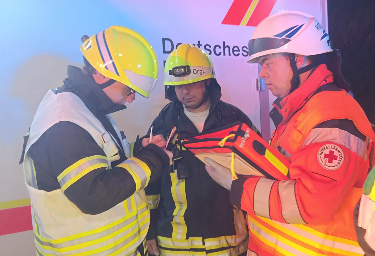 Einsatzleiter Benjamin Heine war zuerst vor Ort, erkundete die Lage und vergab erste Einsatzaufträge an die anrückenden Feuerwehren. Ein Notfallmanager der Bahn war ebenfalls alarmiert. Bahnerden, Menschenrettung, Ausleuchten der Einsatzstelle, Unterstützung beim Transport von verletzten Personen zur Verletztensammelstelle sowie die Evakuierung der im Zug gestrandeten und vieles mehr musste organisiert werden.