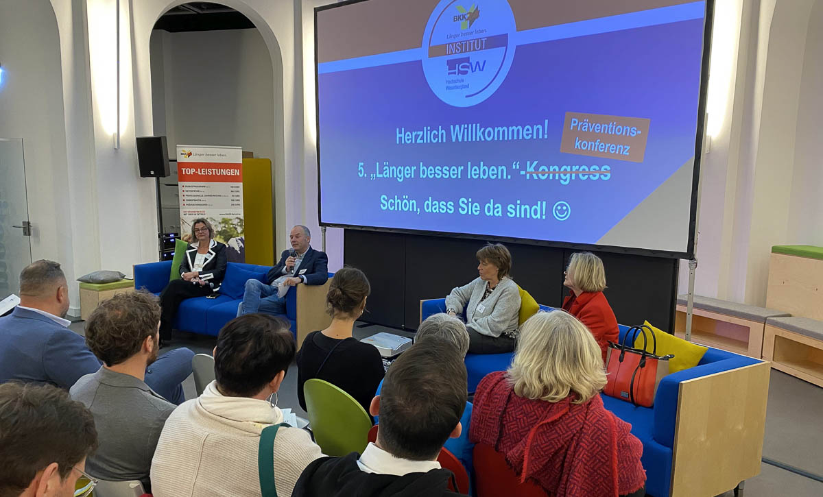 Wie aktuell und brisant das Thema ist, zeigt beispielsweise ein Blick in die Statistik des BKK-Dachverbandes. Die durchschnittliche Anzahl an Krankheitstagen je beschäftigtes Mitglied stieg demnach von 12,6 im Jahr 2008 bis 2022 stetig auf 22,6 Tage. Ein systematisches betriebliches Gesundheitsmanagement (BGM) kann helfen, dieser Entwicklung entgegenzuwirken. „Wir können nur hoffen, alle kleine Rädchen in einem Getriebe zu sein, die dafür sorgen, dass sich diese steile Kurve wieder nach unten bewegt“, so Prof. Dr. Peter Schulte, Leiter des an der HSW angesiedelten und gemeinsam mit der BKK24 betriebenen „Länger besser leben“-Instituts und damit Co-Gastgeber und Moderator der Konferenz.