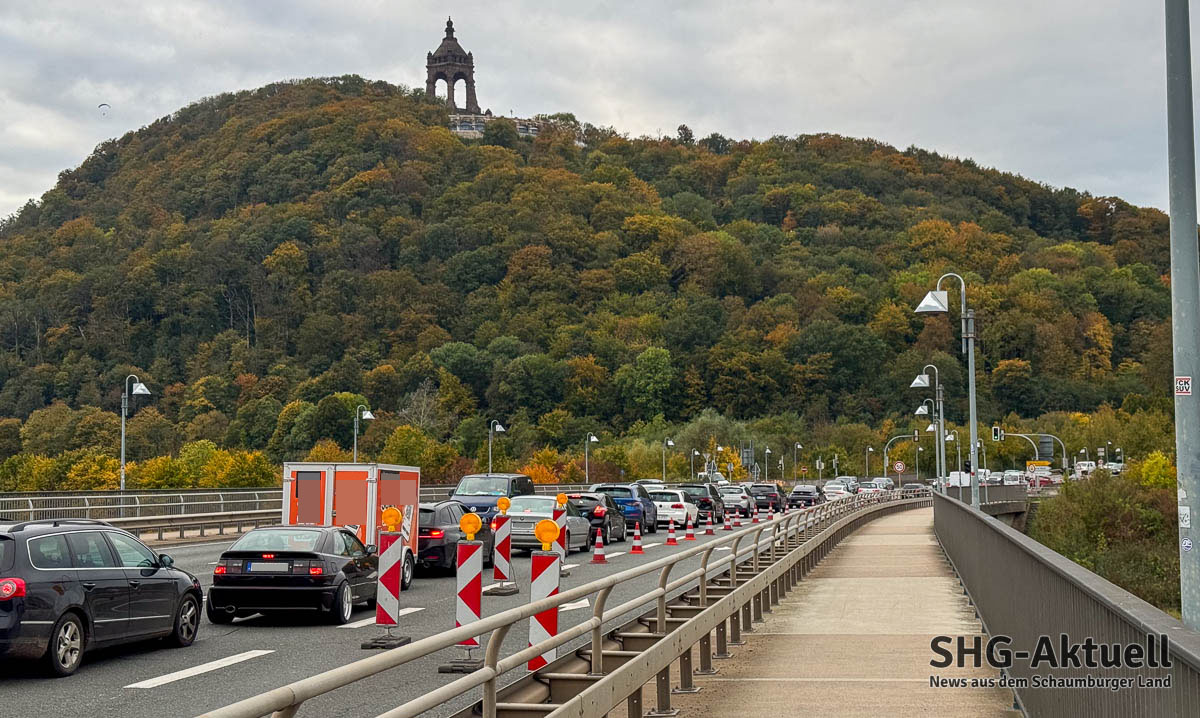 Durch die Sperrung von Zufahrten zum Weserauentunnel bilden sich regelmäßig Staus und Engpässe auf umliegenden Straßen. Die Aufnahme zeigt eine Situation aus dem Oktober diesen Jahres.