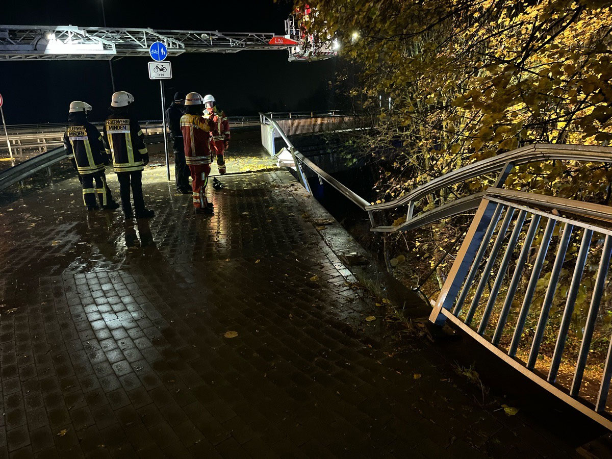 Nach ersten Erkenntnissen der Polizei befuhr ein Honda gegen 22:05 Uhr die Gustav-Heinemann-Brücke (Nordbrücke) in Fahrtrichtung Leteln und beabsichtige, nach rechts auf die Südrampe abzubiegen. Hierbei stieß der PKW gegen den linksseitigen Bordstein, überfuhr eine Verkehrsinsel sowie den Gehweg und durchbrach das dortige Brückengeländer. Der Wagen stürzte anschließend etwa 15 Meter tief eine Böschung hinunter, überschlug sich mehrfach und blieb in einem Grünstreifen neben dem Weserradweg liegen.