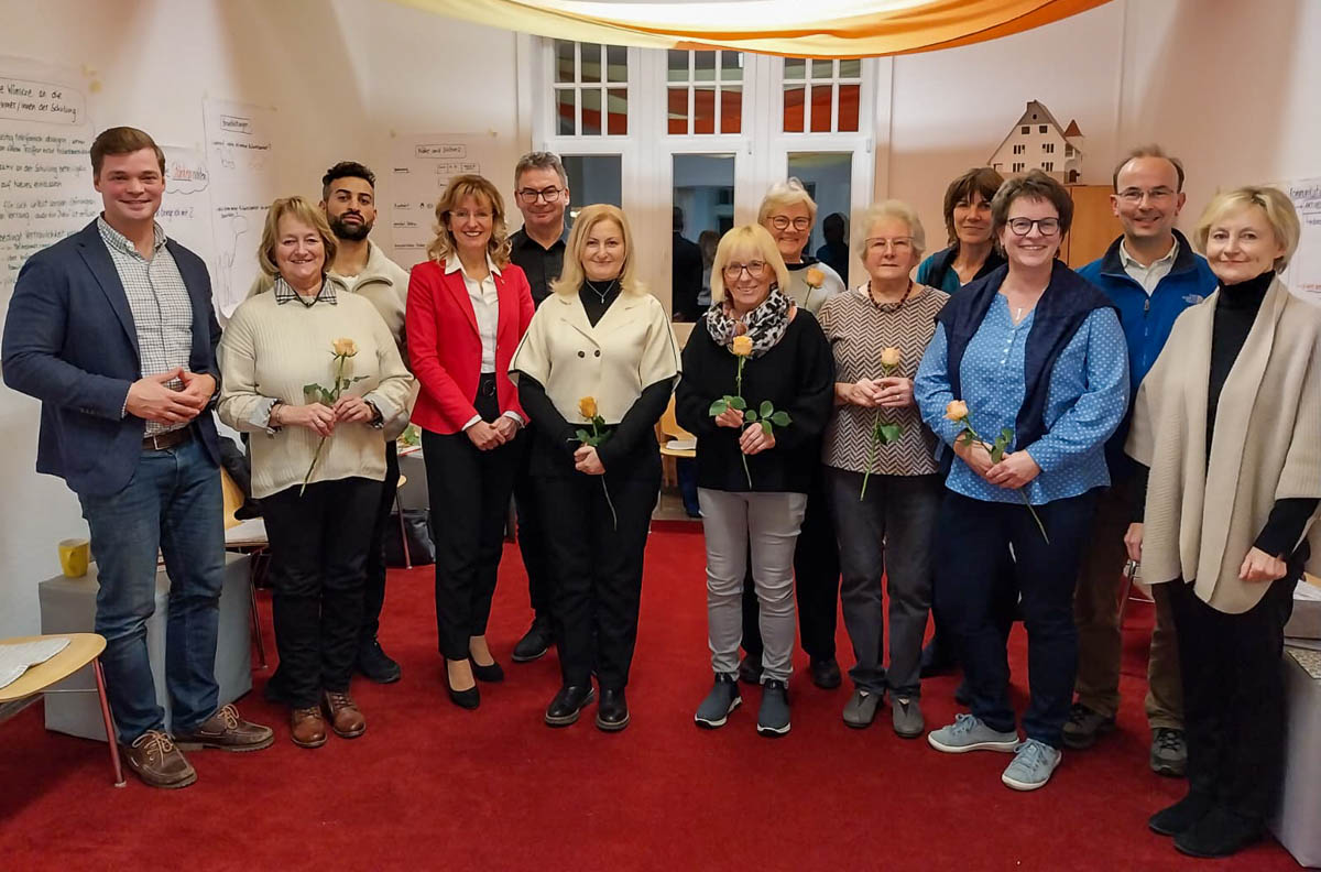 Petra Rabbe-Hartinger zeigte sich erfreut darüber, dass die Schulungsgruppe dieses Mal so vielfältig war: „Die Altersspanne der Teilnehmenden reichte von 35 bis 77 Jahren. Zwei Männer und acht Frauen nahmen an der Schulung teil. Ein Teilnehmer ist im Libanon geboren, die Familie einer weiteren Teilnehmerin stammt aus der Türkei. Die Hälfte der Teilnehmenden steht noch im Berufsleben.“ Trotz der großen Altersspanne und den ganz unterschiedlichen beruflichen Hintergründen habe die Schulungsgruppe schnell zueinander gefunden und bei den Treffen konstruktiv und vertrauensvoll zusammengearbeitet. Rabbe-Hartinger wünschte allen Engagierten gutes Gelingen für ihr zukünftiges Ehrenamt und versicherte ihnen: „Sie können sich darauf verlassen, dass Sie von unseren beiden Fachkräften Christa Harms und Albrecht Schäffer gut begleitet werden.“