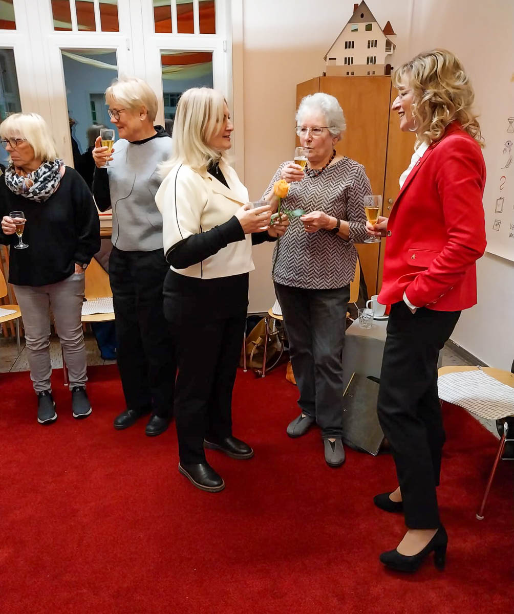 Zum Abschluss erhoben alle das Glas und stießen mit Apfelsecco auf den erfolgreichen Abschluss der Familienpaten-Schulung an.