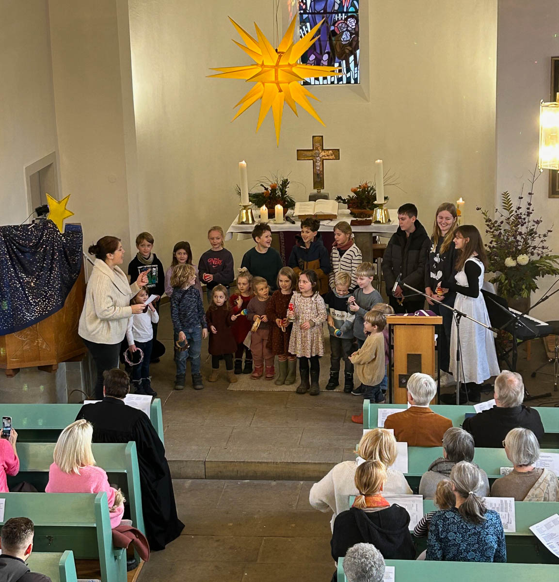 Es wurde gemeinsam gesungen. Die Kinder des hiesigen KITA „Kinderwelt“ führten ihr Musikstück auf, lauschten dem Stern der ihnen leuchtete und den schönen Gesängen der Gemeinde, so zu „Wir sagen Euch an dem lieben Adven“, „Alle Jahre wieder“ , „So this is Christmas“ und abschließend „I wanna wish You a merry Christmas!“