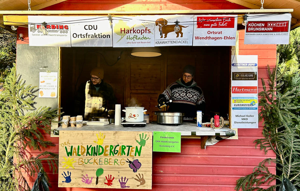 Beim Verkehrsverein Wendthagen, unterstützt von Feuerwehrkameraden, gab es Brat- und Currywürste (580 Stück) mit Pommes (40 Kilogramm), beim TSV Eintracht Bückeberge warmen Kakao und Kalt-Getränke, die Landjugend Bückeberge schenkte wieder Glühwein und Punsch aus.