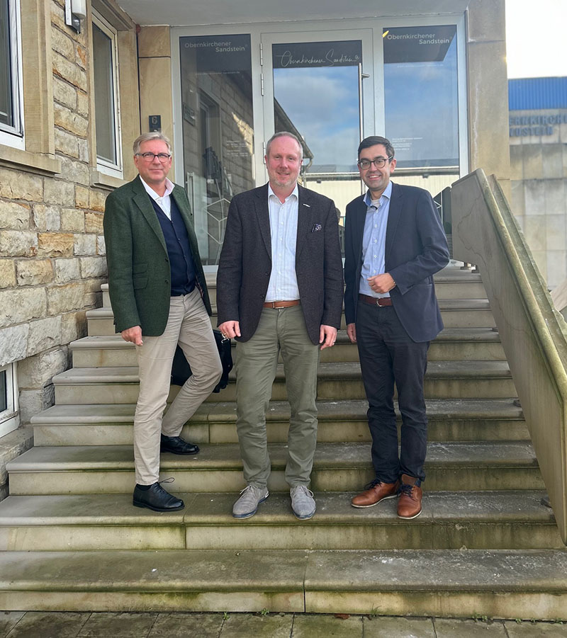 Im Gespräch mit dem Geschäftsführer Tim Wesling und Stefan Tegeler von der Innovationsgesellschaft, der hiesige Unternehmen berät, wurde deutlich, dass der Einsatz von Naturstein als ökologischer Baustoff zum zukunftsfähigen und nachhaltigen Bauen beiträgt.