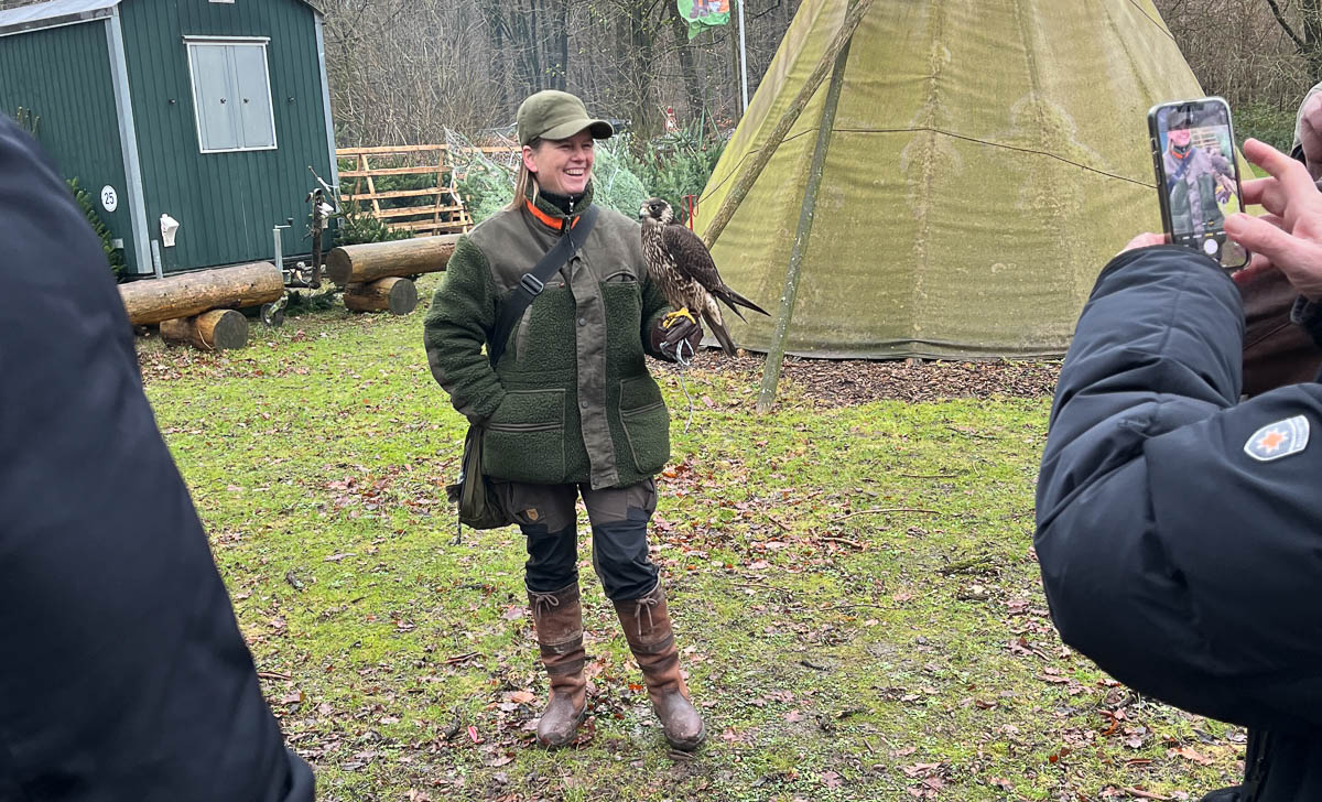Besonderes Highlight in diesem Jahr, war der Besuch von Falknerin Anke Bormann. Sie präsentierte ihren Falken und beantwortete die vielen Fragen der Interessierten. In diesem Jahr konnten endlich wieder einige Aussteller ihre Waren im Forsthaus verkaufen. Mit dabei waren Dagmar Mesenbrink mit schicken selbstgemachten Dingen, Heike Schildmeier mit weichen und bequemen Hundekissen, Iris Dolz mit Puppen, Gestricktem und Kuscheligem, KAMERANI mit stilvoller jagdlicher Bekleidung mit liebevollen Details, Jagdshop Hameln mit Regencapes und Schutzwesten für Hunde und im Außenbereich des Forsthauses war Holzdeko Gellermann mit Schönem aus überwiegend Eichenholz zu finden.