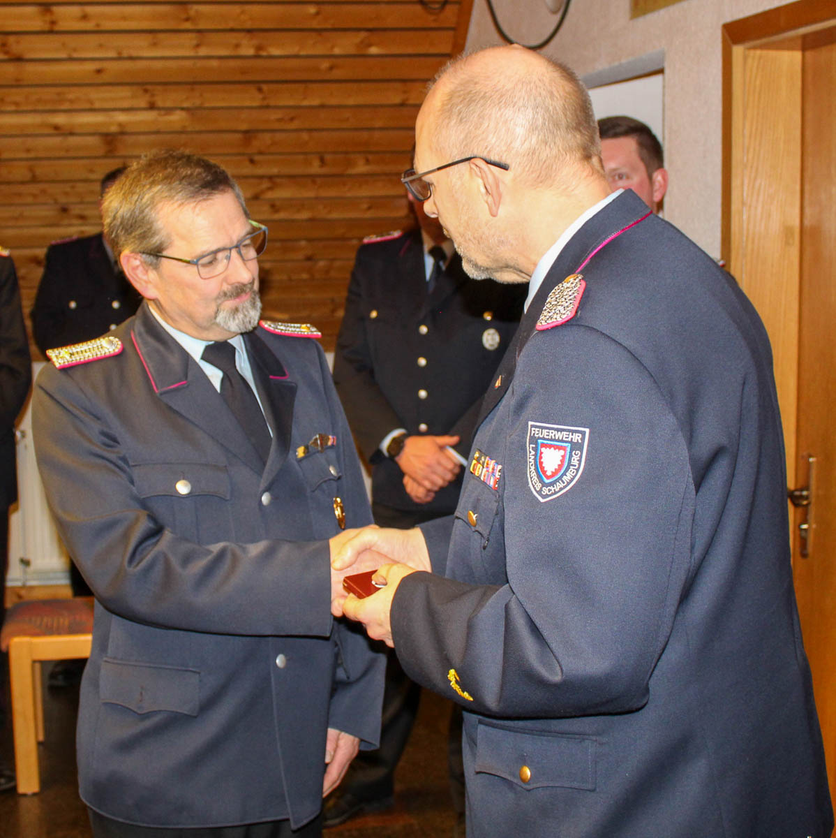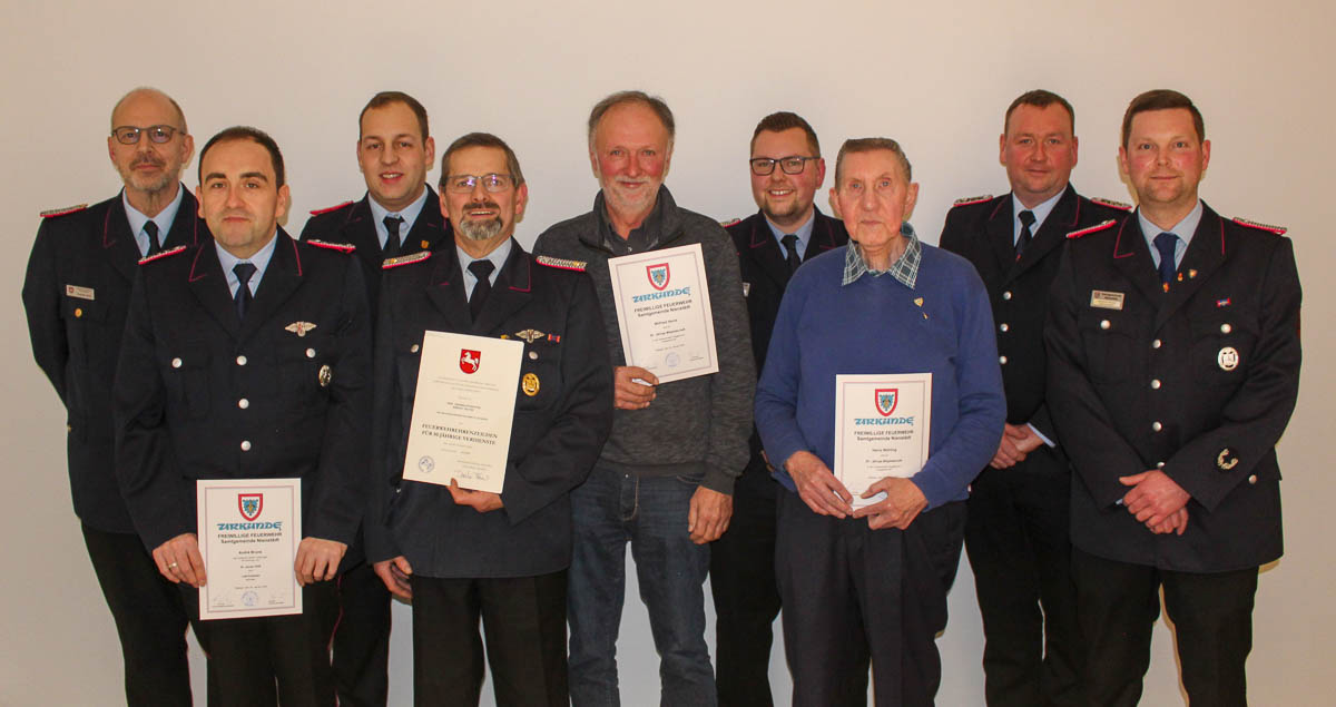 Im Rahmen der Versammlung konnten einige Kameraden geehrt und befördert werden. André Bruns wurde zum Löschmeister und Marcel Heine zum 1. Hauptfeuerwehrmann befördert. Für 50 Jahre aktive Mitgliedschaft wurde Bernd David mit dem Niedersächsischen Ehrenzeichen für langjährige Verdienste ausgezeichnet. Wilfried Heine wurde für 50 Jahre und Heinz Wehling für 25 Jahre passive Mitgliedschaft geehrt.