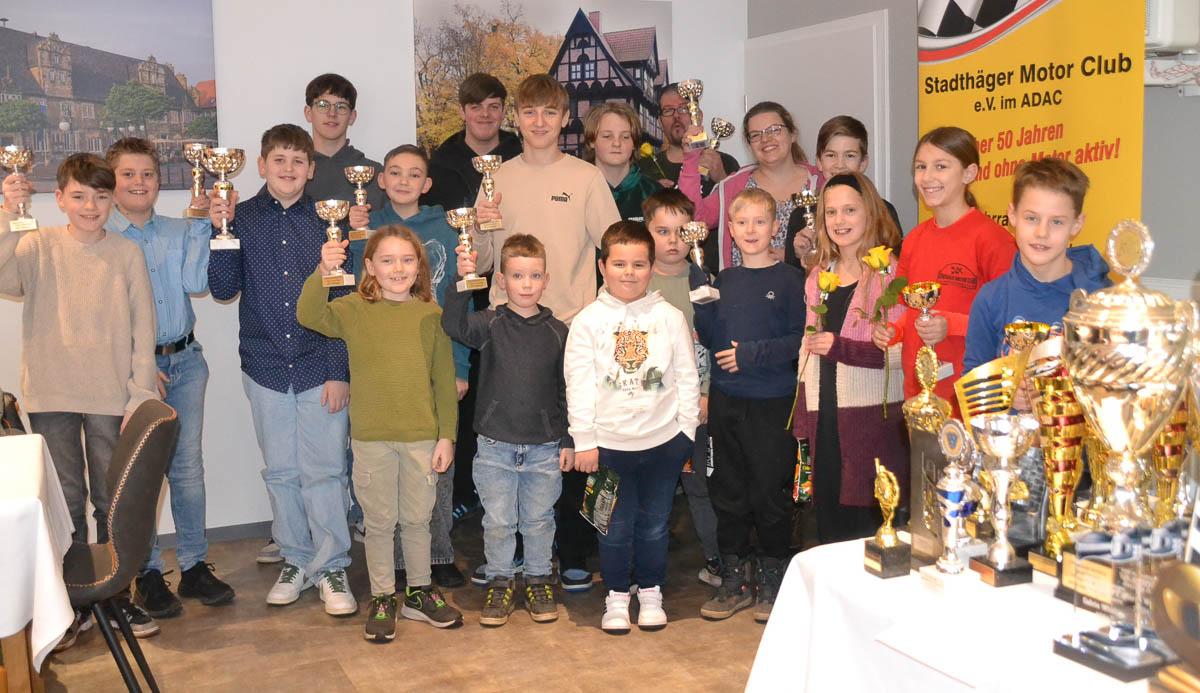 Trotzdem war der Saal im Schützenhaus rappelvoll. 77 Mitglieder vom Stadthäger Motor Club e. V. im ADAC im Alter von sechs bis 75 Jahren waren zur jährlichen Versammlung erschienen und wurden von vielen Pokalen und Auszeichnungen erwartet. Unter ihnen war auch Jasmin Ebert vom ADAC Niedersachsen/Sachsen-Anhalt, die außer Grüße des Regionalamtes noch kleine Geschenke für die Mitglieder überbrachte und sich über die Einladung nach Stadthagen sehr gefreut hat.