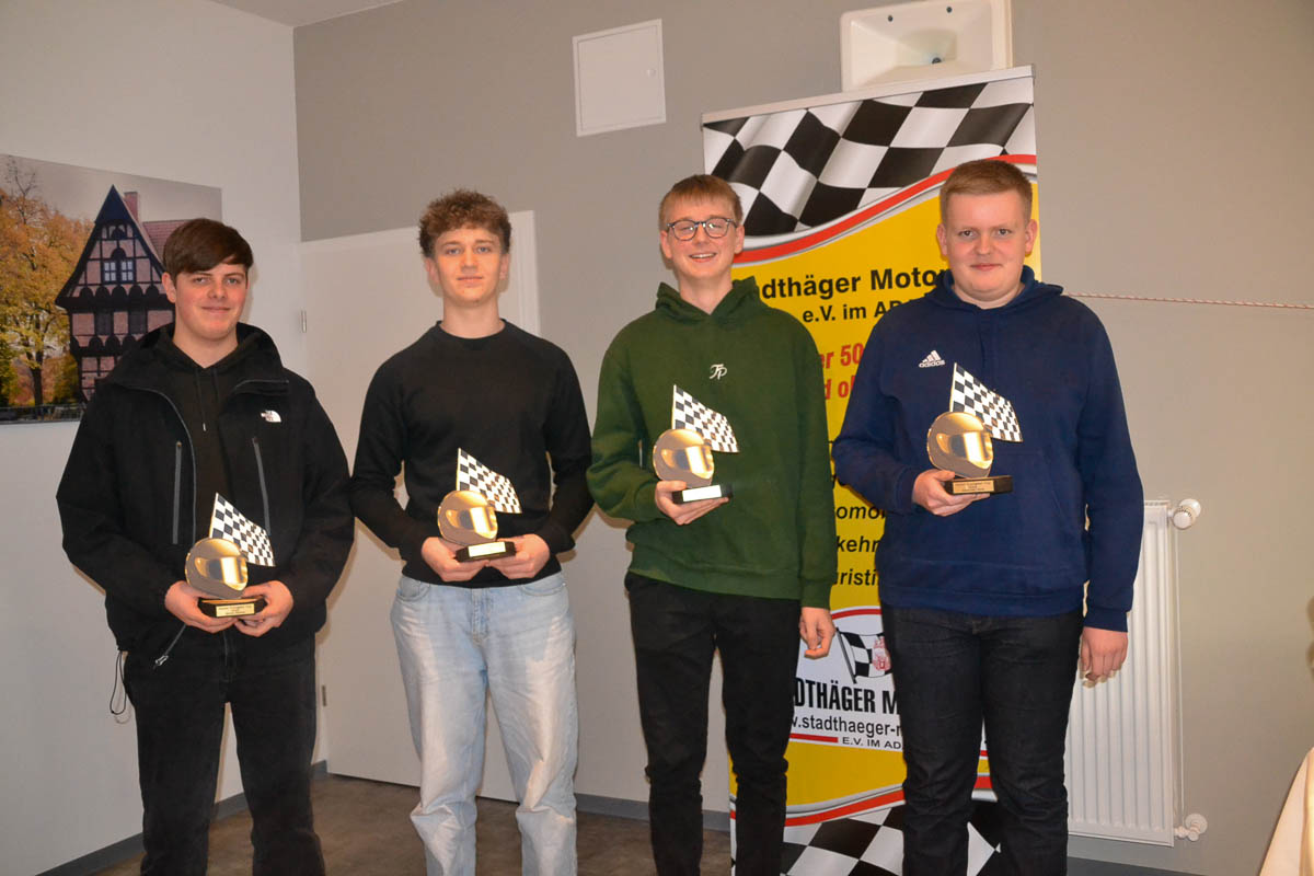 Vom 1. Vorsitzenden und Sportleiter Olaf Tegeler wurden die Fahrer und Fahrerinnen im Jugend Kartslalom, Rundstrecken Einsteiger Cup Kart, Slalom Youngster Cup und im eSports Bereich geehrt. Clubmeister des Jahres 2024 im Kartslalom wurde Marlo Leander Schulz, bester Nachwuchsfahrer Logan Brandts. Emil Lawin Große bekam den großen „Motivation“- Wanderpokal.