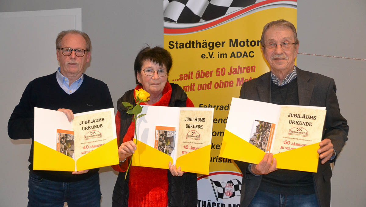 50 Jahre einem Verein die Treue zu halten ist keine Selbstverständlichkeit. Rainer Rilka dufte sich dafür auszeichnen lassen. 45 Jahre ist Elfi Mevert im Verein, 40 Jahre Diether Wilkening. Sie duften sich über eine Urkunde und Schaumburger 5er freuen. Chris, Hildegard und Ian Connor gehören dem SMC 25 Jahre an. Zehn Jahre Mitglied sind Anja, Nico und Timo Greth, Luca und Mike Komoll und Kerstin Stahlhut. Auch für diese gab es vorbereitete Präsente.