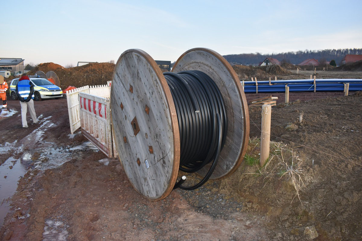 Unbekannte Täter hatten auf der frei zugänglichen Baustelle von zwei Holzkabeltrommeln insgesamt ca. 450 Meter Erdkabel abgewickelt und abtransportiert.