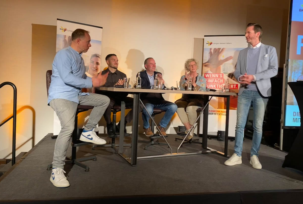 Anschließend leitete Christian Haacke, Moderator beim NDR und an diesem Abend auch im Gasthaus Vehlen, über zu einer Talkrunde. Wie herausfordernd, aber auch wie lohnend eine tiefgreifende Änderung von Gewohnheiten sein kann, berichtete Britta Kunze. Die Integrationsbeauftragte des Landkreises Schaumburg hatte ihre chronische Erkrankung mit Hilfe des TV-Formats „Die Ernährungs-Docs“ durch eine radikale Umstellung ihrer Ernährung in den Griff bekommen: „Ich habe einfach gelernt, dass meine neuen Gewohnheiten mir richtig guttun.“