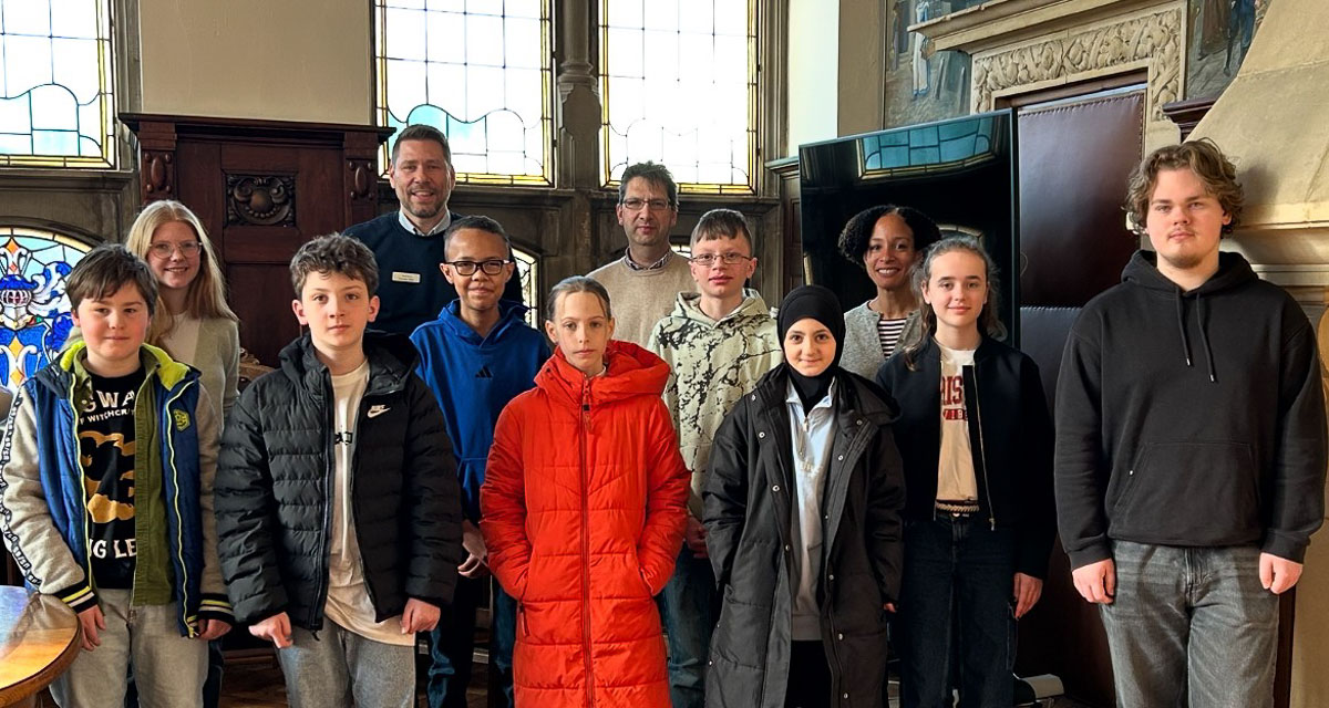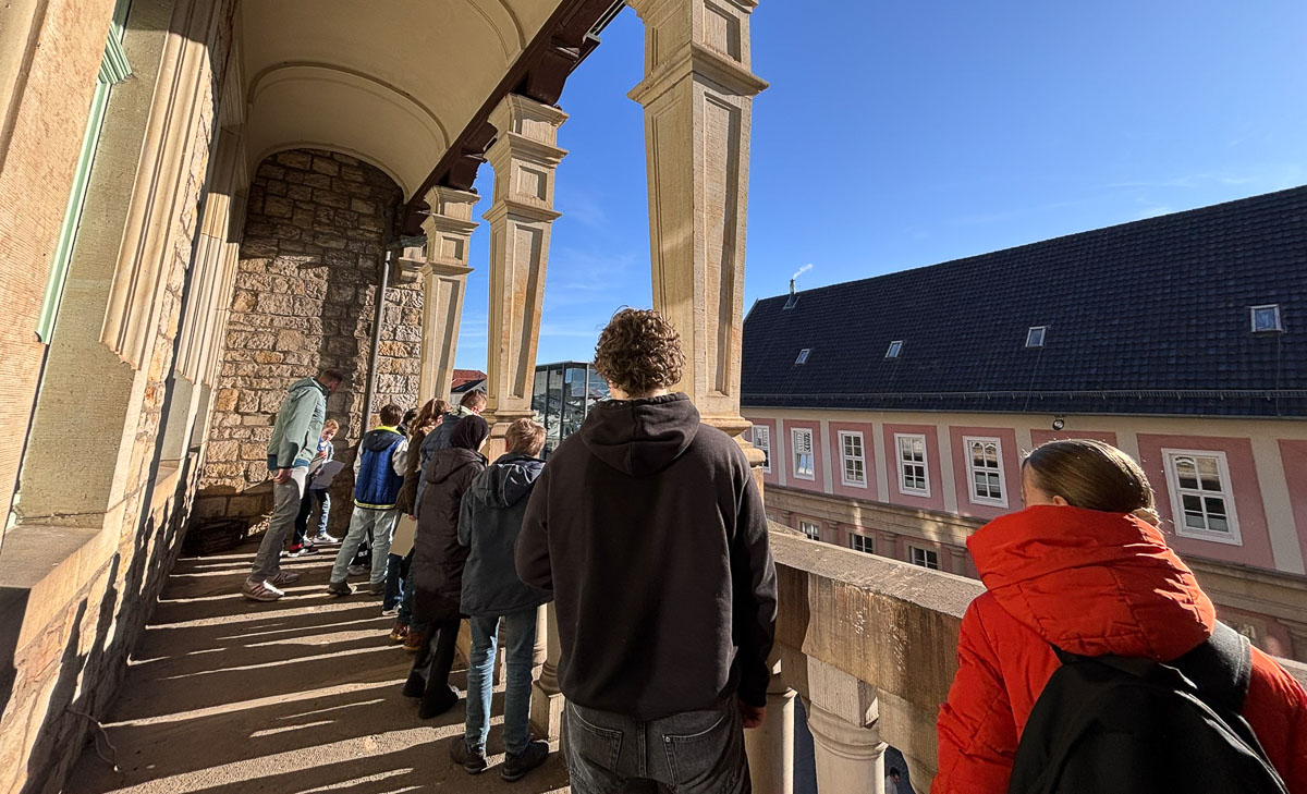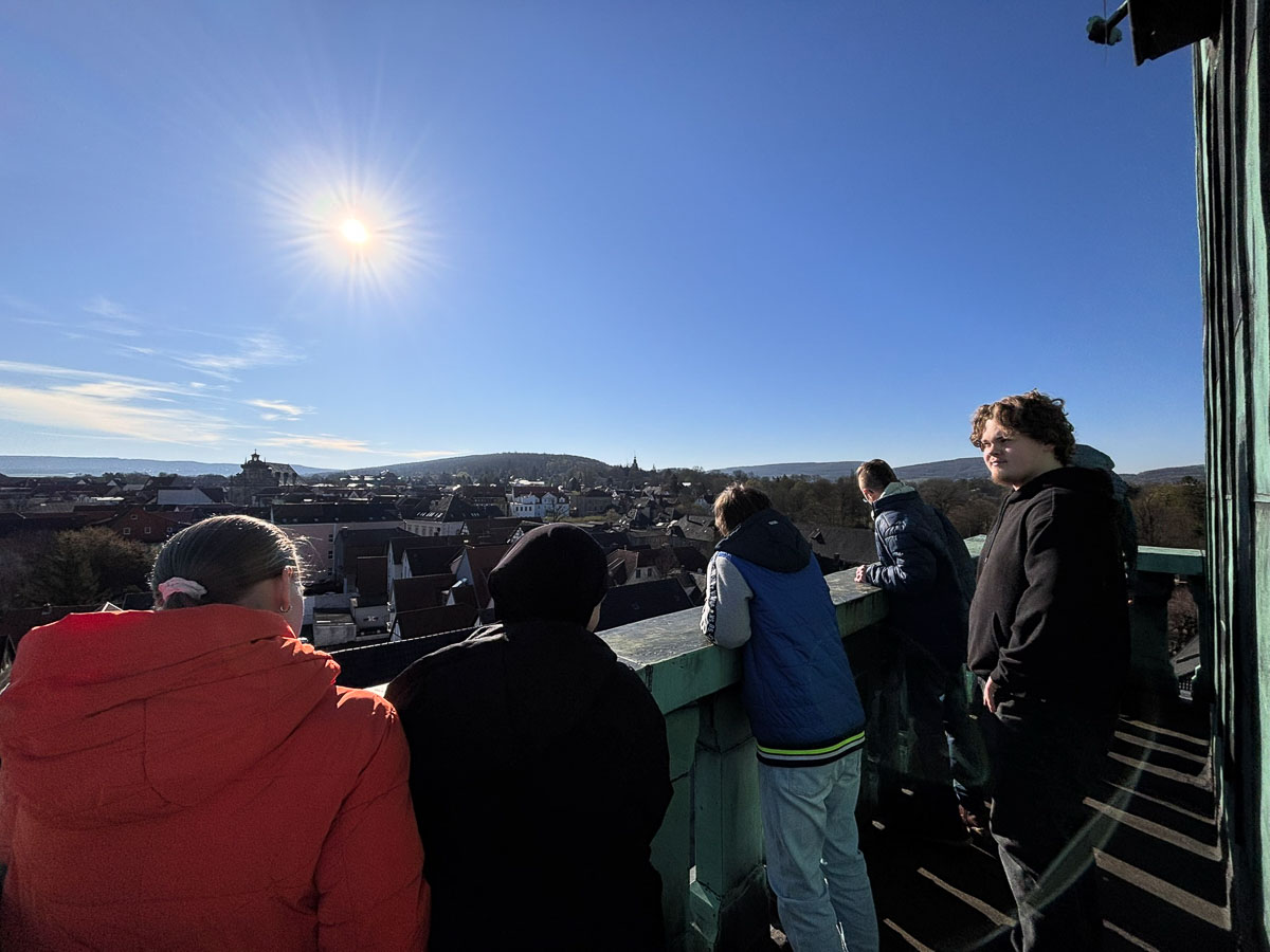Nach der Begrüßung stand eine Erkundung das Rathauses an, wobei die Teilnehmenden unter anderem die Möglichkeit hatten bei wolkenlosem Wetter die schöne Aussicht vom Rathausturm über die Stadt Bückeburg zu genießen, das Büro des Bürgermeisters zu erkunden, einen Blick vom Rathausbalkon auf den Marktplatz zu werfen und das historische Uhrwerk der Rathausuhr zu bestaunen.